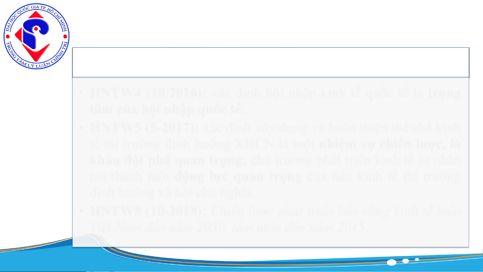 • HNTW4 (10/2016): xác định hội nhập kinh tế quốc tế là trọng