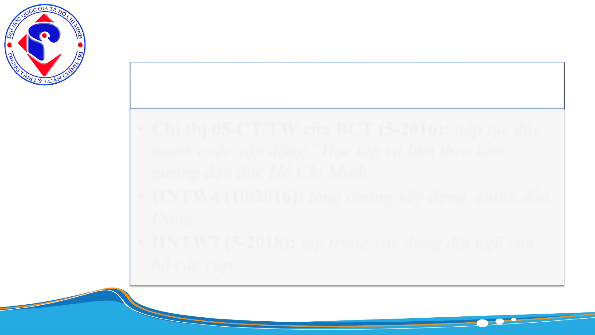 • Chỉ thị 05-CT/TW của BCT (5-2016): tiếp tục đẩy