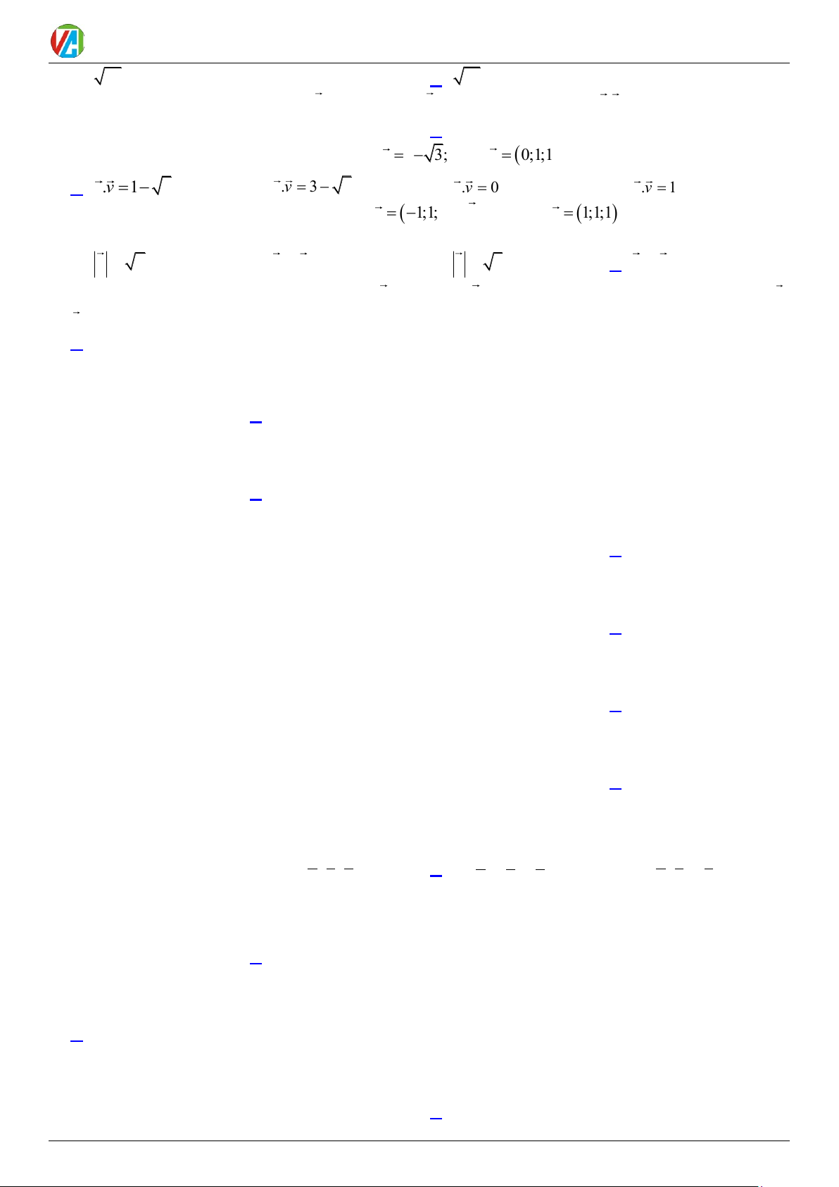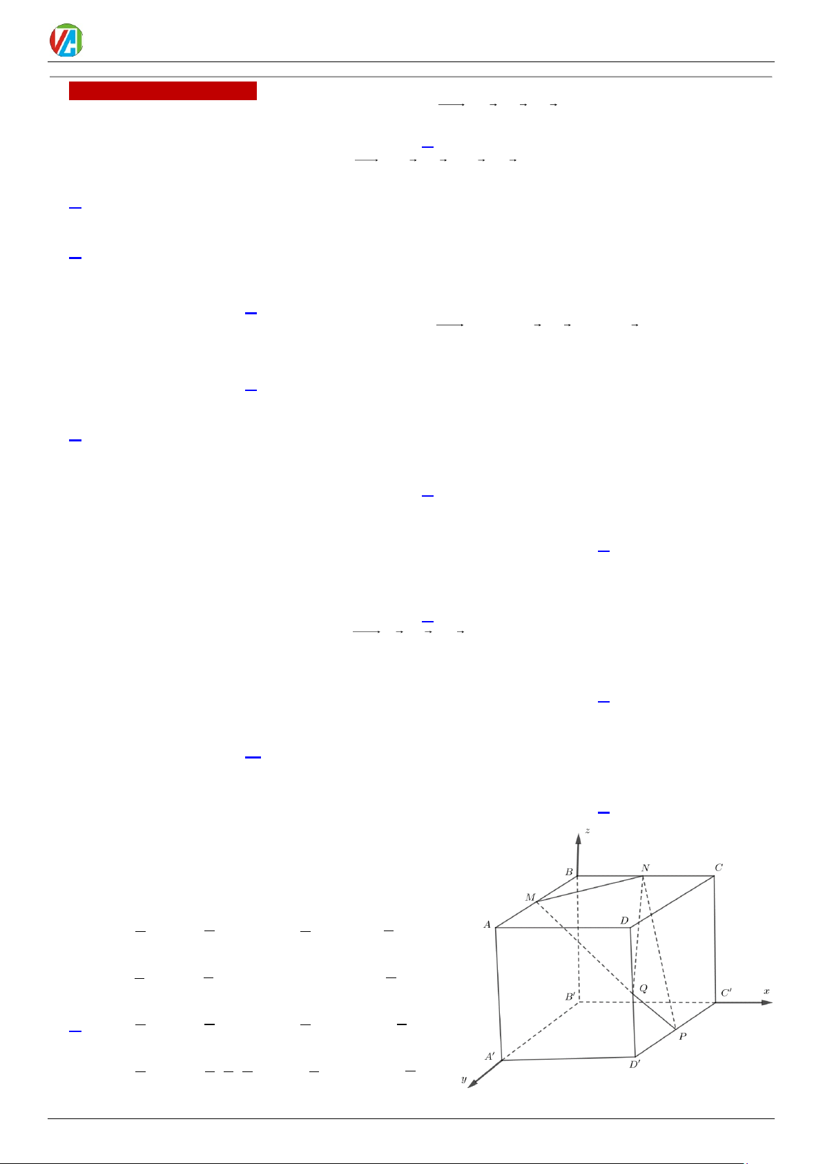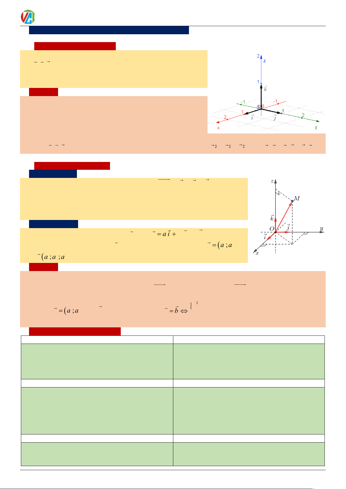 CHƯƠNG VECTƠ VÀ HỆ TOẠ ĐỘ TRONG KHÔNG GIAN