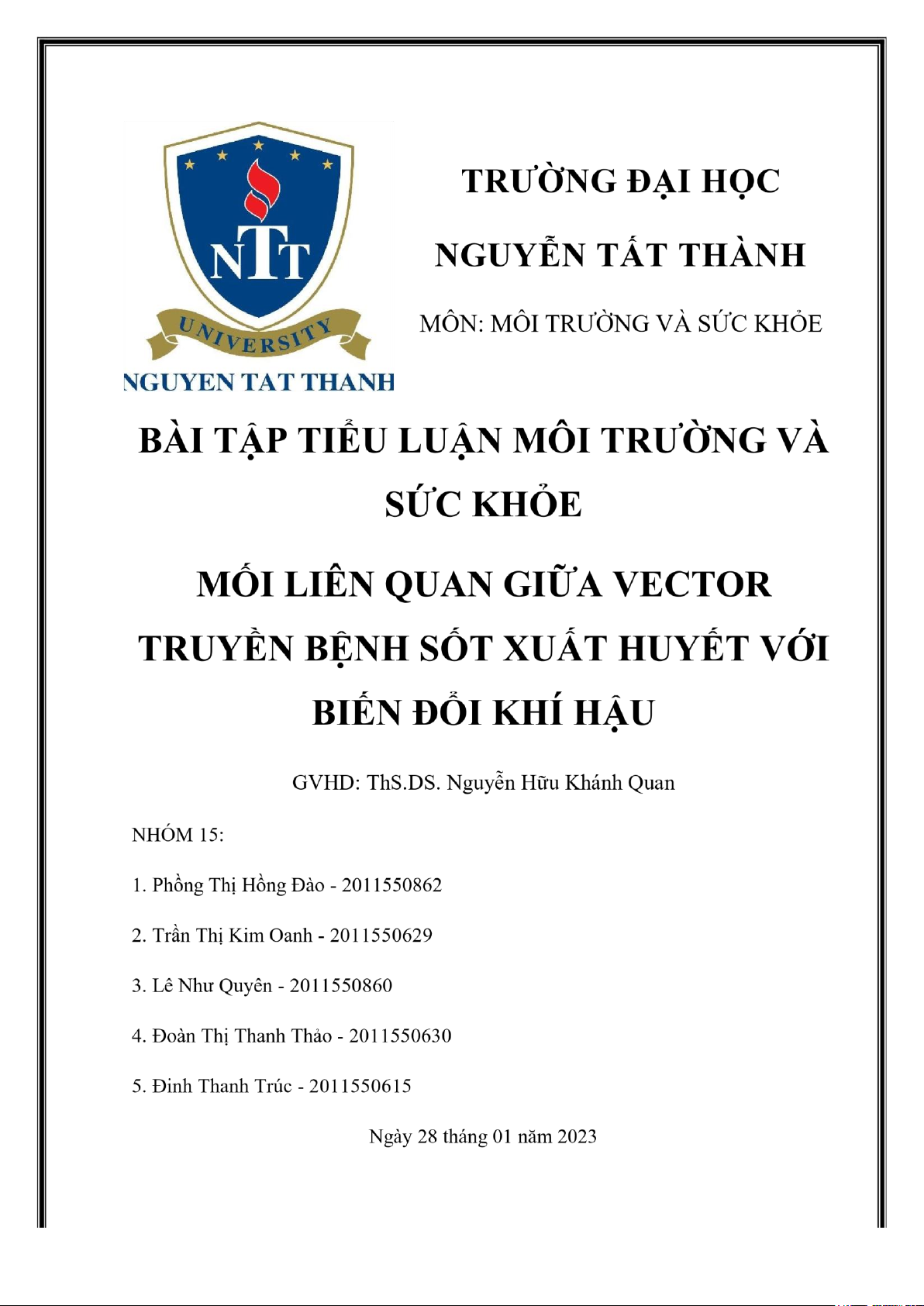 “mối liên quan giữa vector truyền bệnh sốt xuất huyết với biến đổi khí hậu” của nhóm