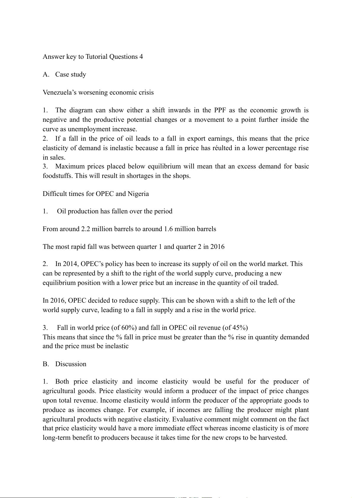 2. If a fall in the price of oil leads to a fall in export earnings, this means that the price