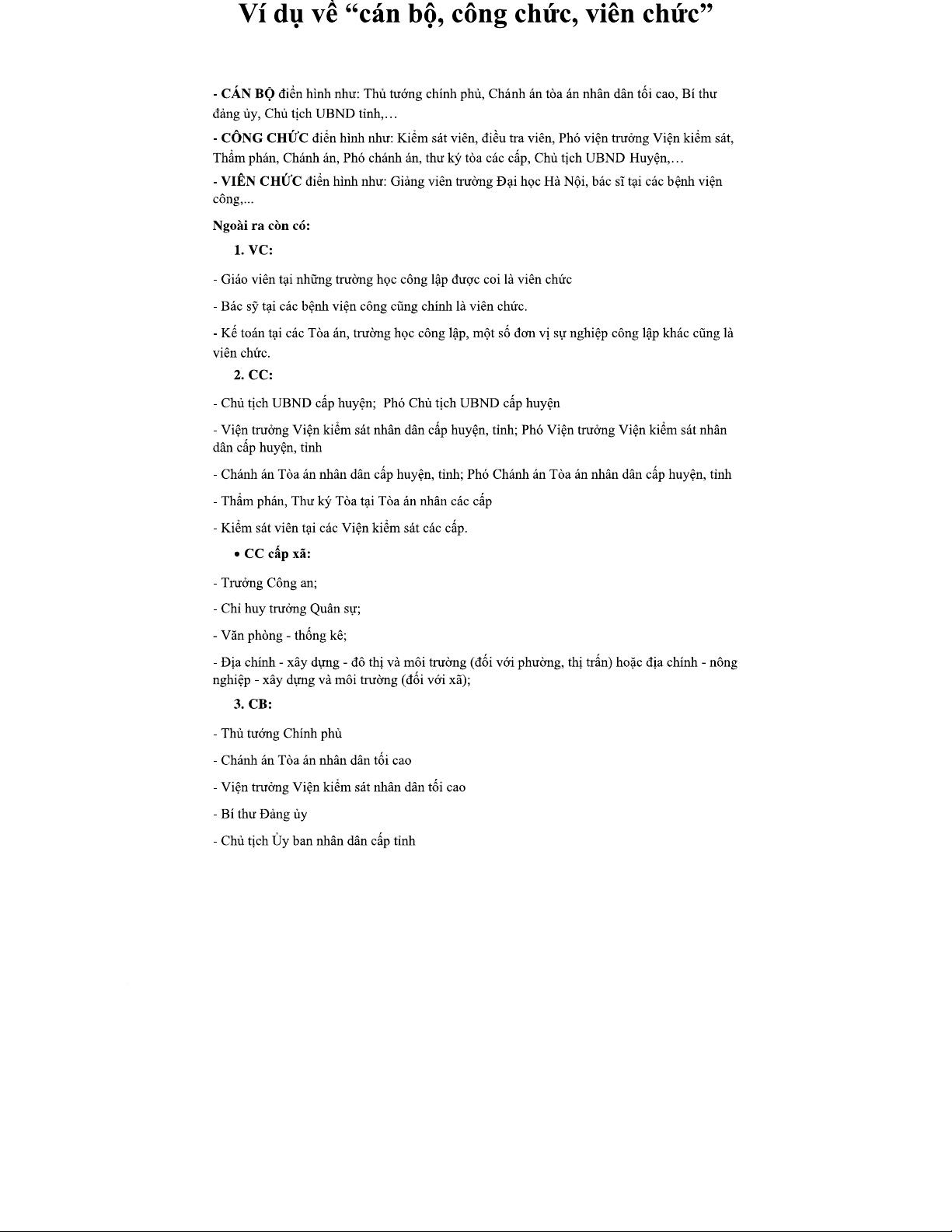 Ví dụ điển hình về Cán bộ, Công chức, Viên chức tại Việt Nam