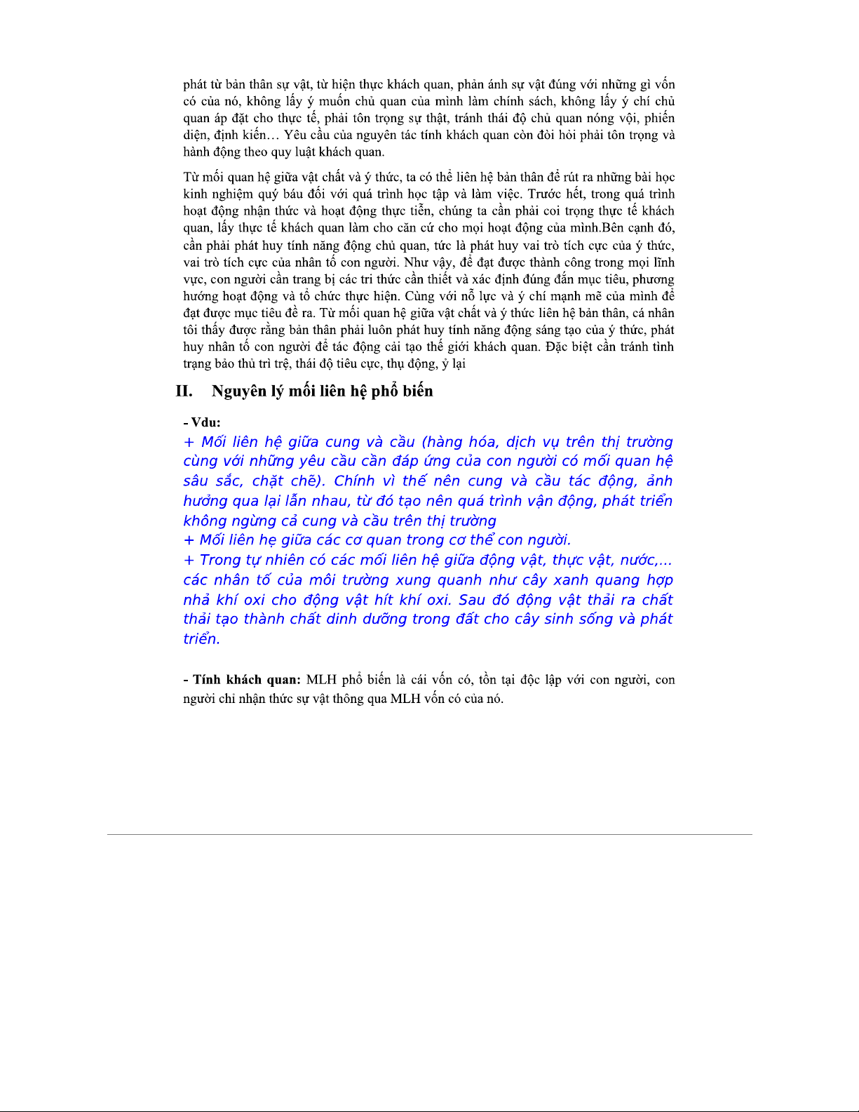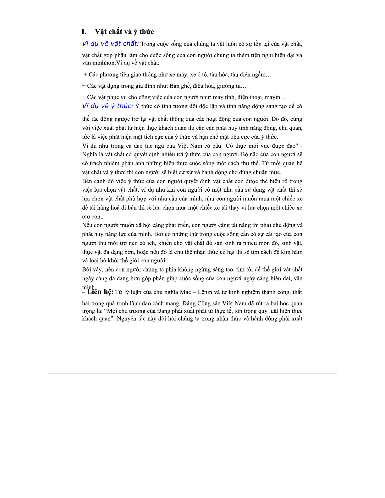 Ví dụ triết học - Tổng hợp chương 2 về vật chất và ý thức