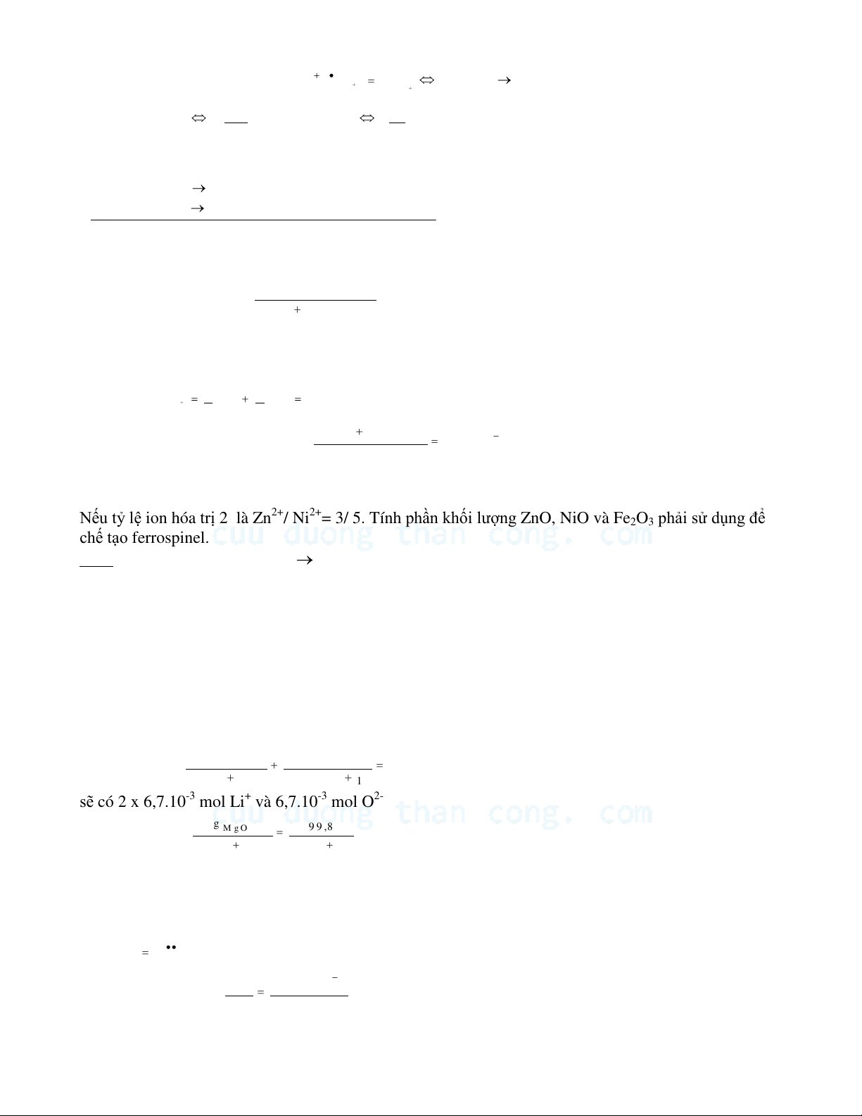 6,7.10-3+ 2,4758 = 2,48425 mol O2- Tổng số mol 4,9759 mol 2 L i / V M g O 3 Số N 2 x 6 ,7 1 . 0 trống oxy: N L i OV = = 6,7.10-3 mol 2 2 CuuDuongThanCong.com