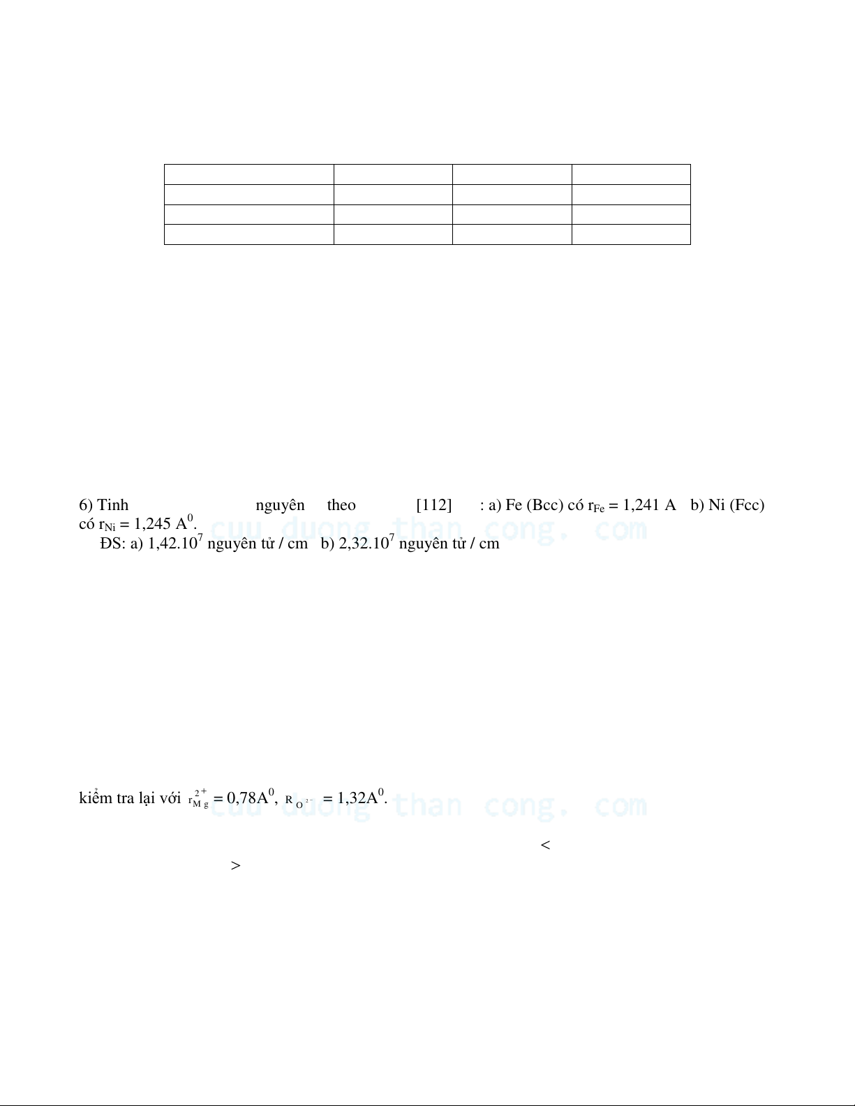 của NaCl và trung bình (rFe+ R0) = 2,15 A0. ĐS: 5,73 g / cm3