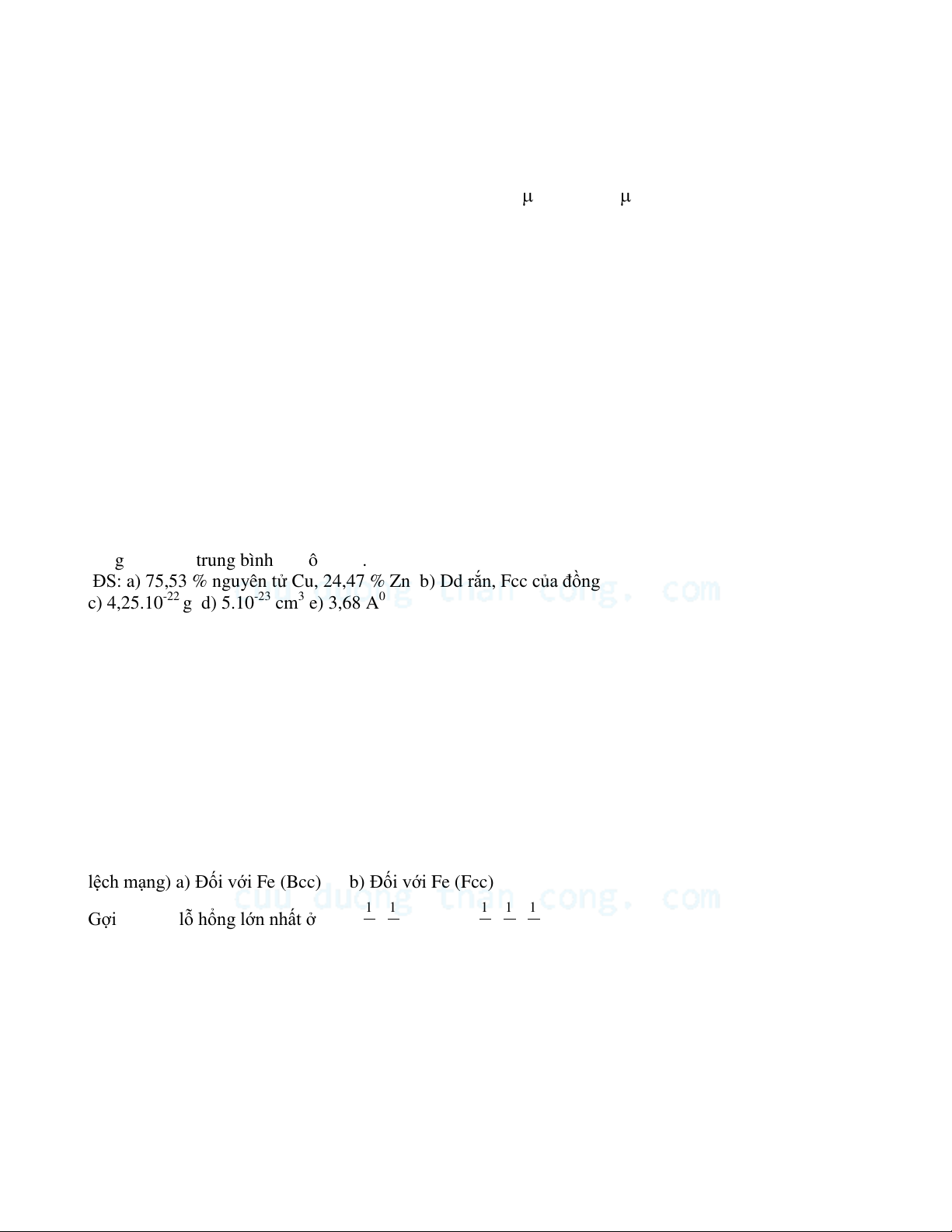 lệch mạng) a) Đối với Fe (Bcc) b) Đối với Fe (Fcc) Gợi 1 1 1 1 1