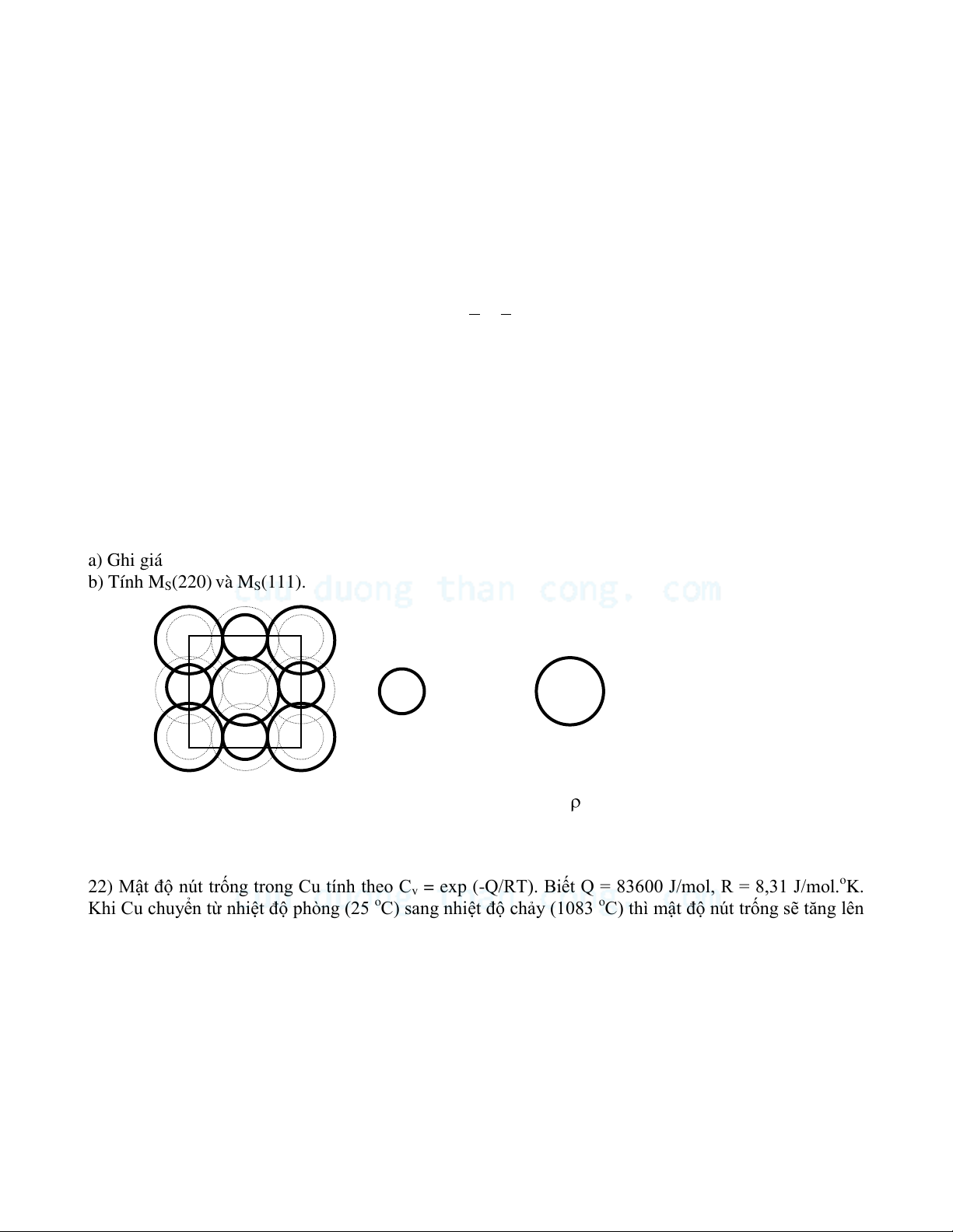 22) Mật độ nút trống trong Cu tính theo Cv = exp (-Q/RT). Biết Q = 83600 J/mol, R = 8,31 J/mol.oK.