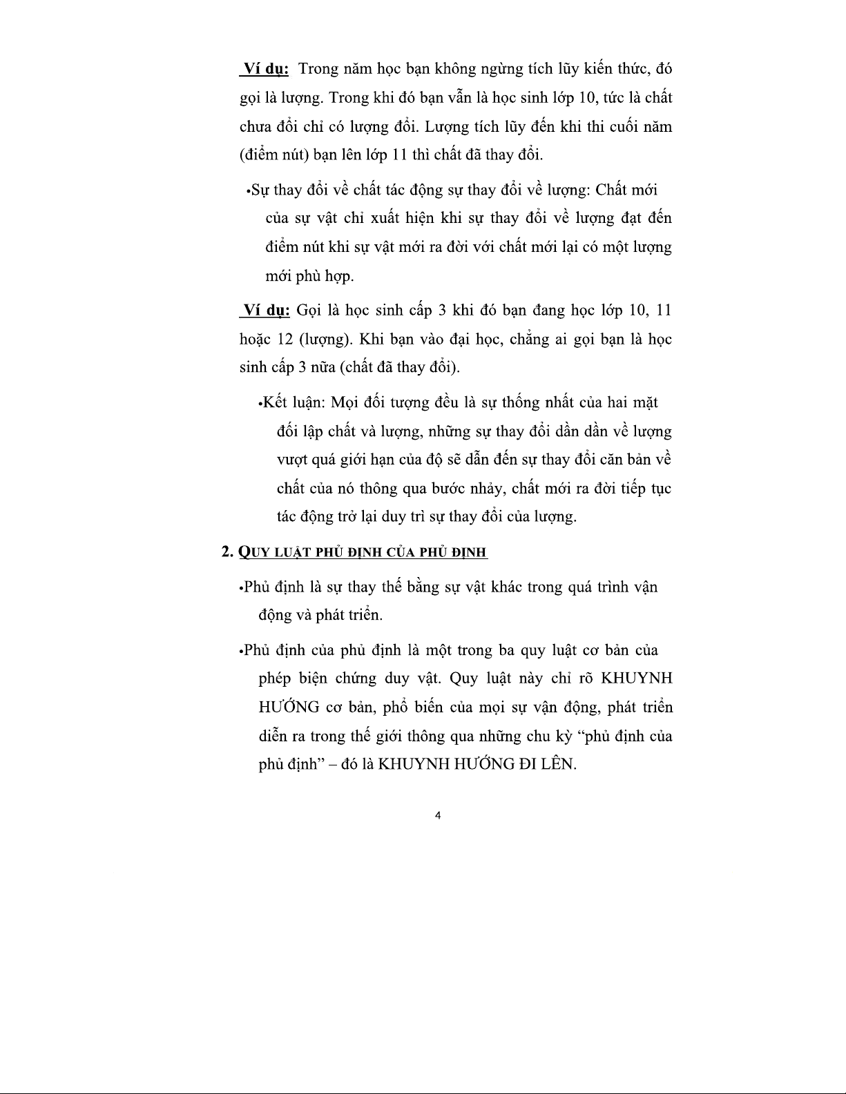 Ví dụ về Quy luật lượng-chất và Quy luật phủ định của phủ định