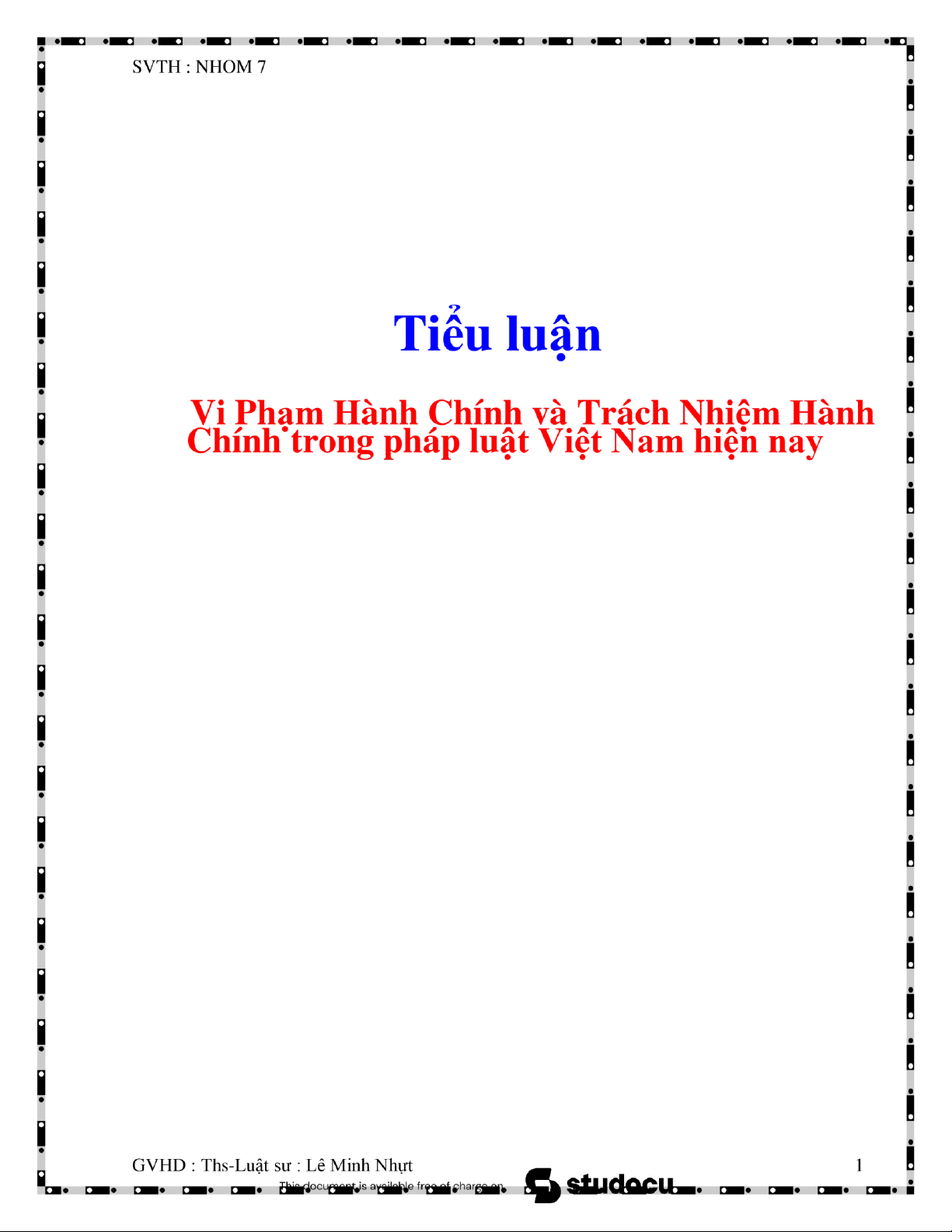 GVHD : Ths-Luật sư : Lê Minh Nhựt 2 lOMoAR cPSD| 44919514 SVTH : NHOM 7 LỜI MỞ ĐẦU