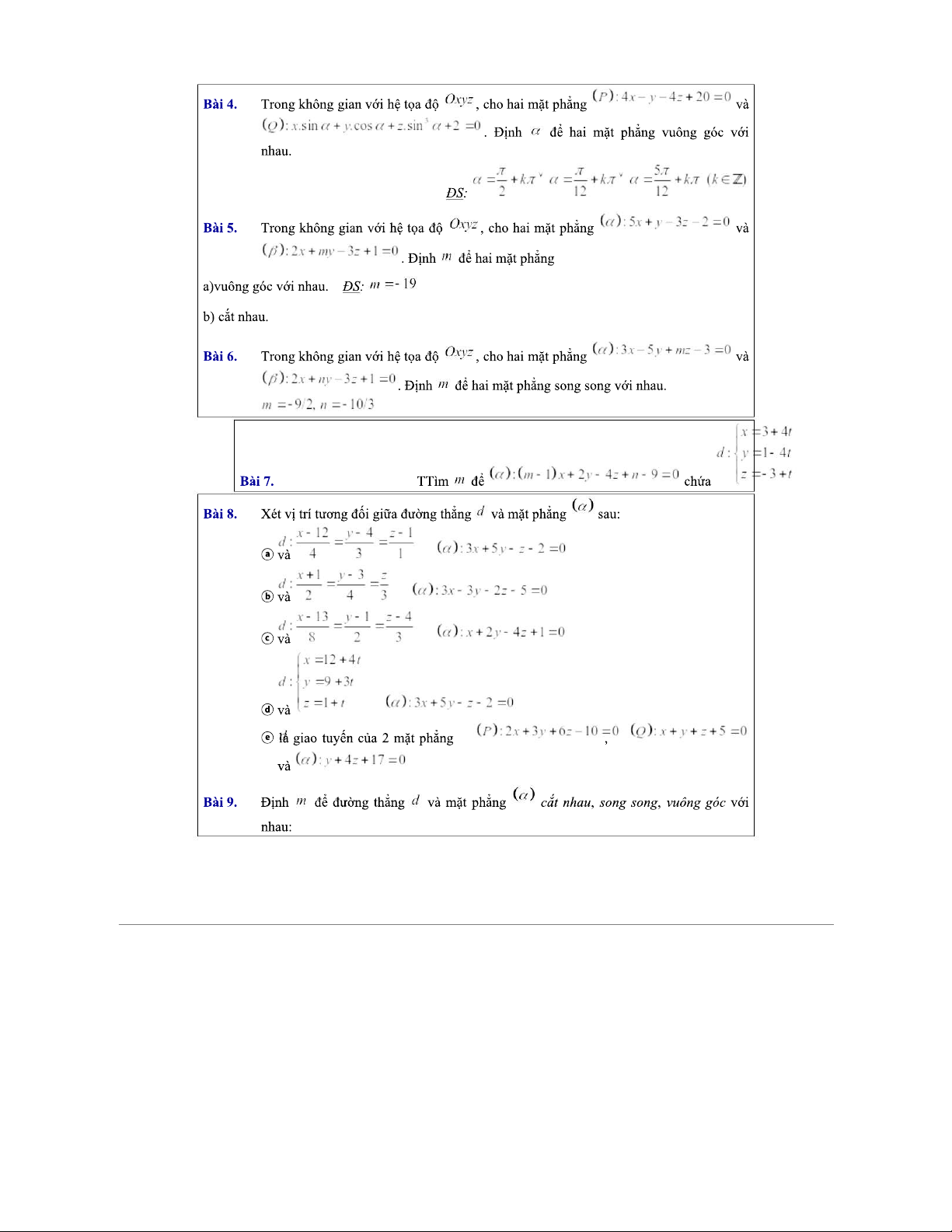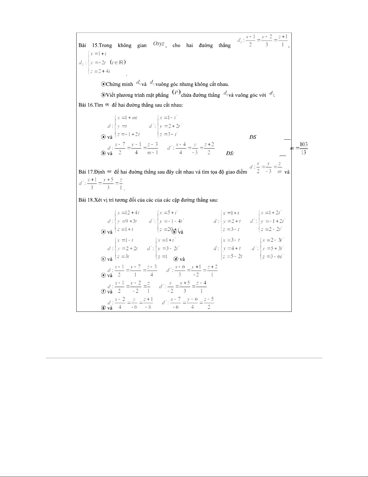 Vị Trí Tương Đối Các Đường Thẳng và Mặt Phẳng - Toán 12