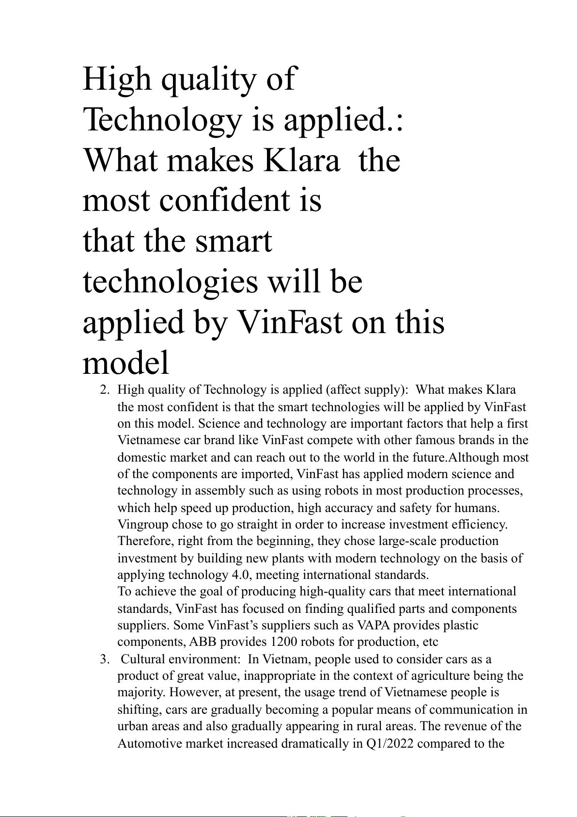 2. High quality of Technology is applied (affect supply): What makes Klara