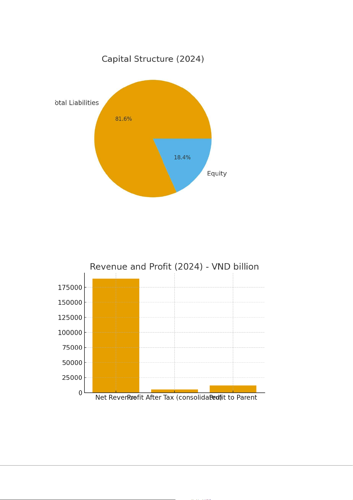 The following charts illustrate the financial structure and profitability of Vingroup in 2024: • Asset Structure: • Capital Structure: