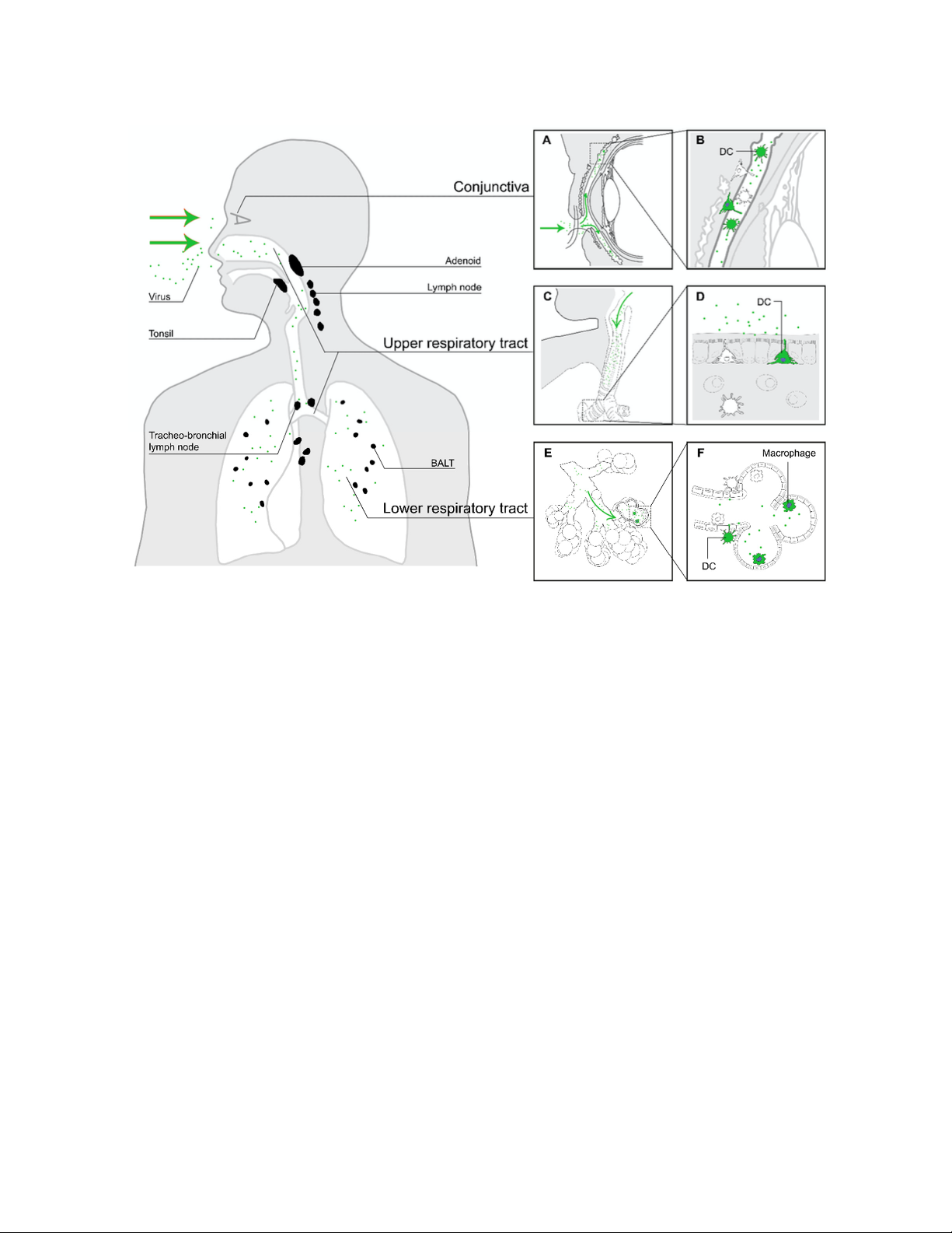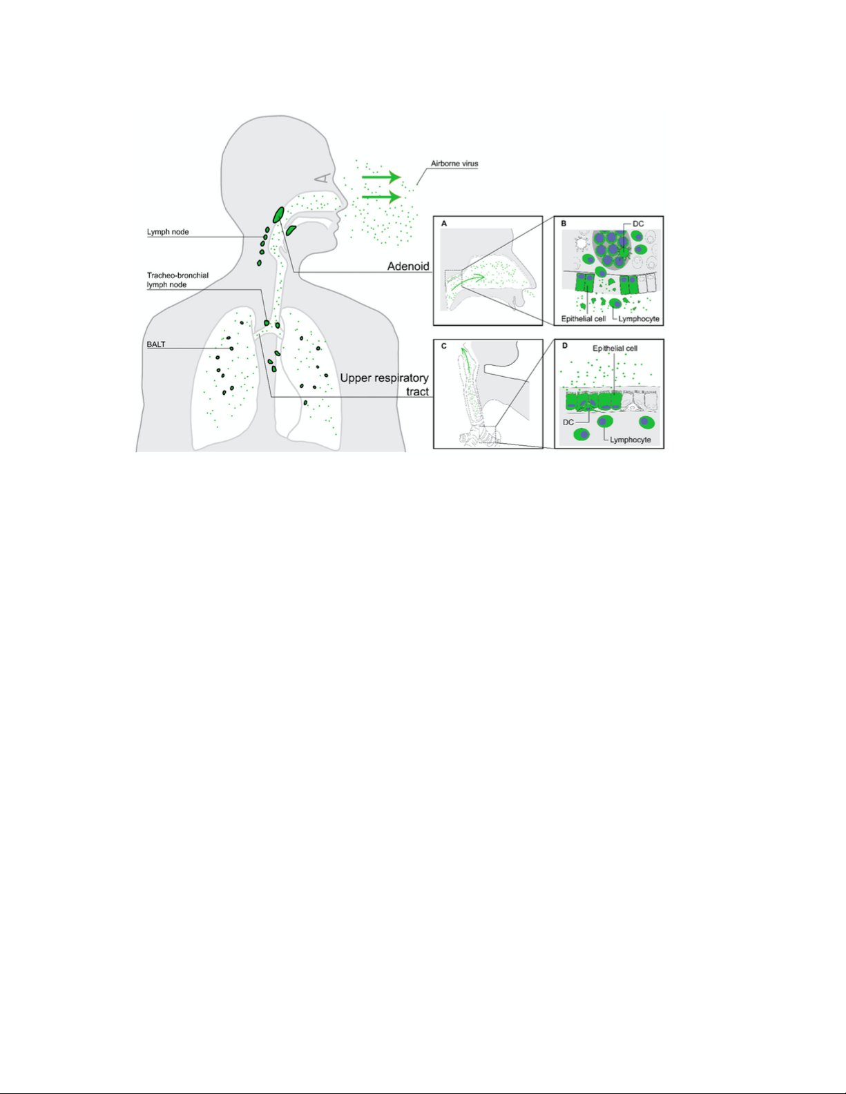 amidan (hình A) giải phóng hạt virus vào đường hô hấp trên (hình B). Các tổn thương