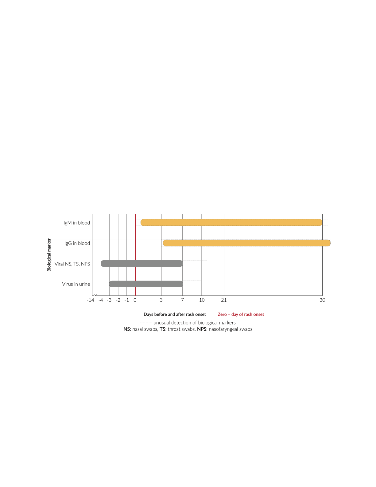 Hình 10. Các giai đoạn dấu ấn sinh học của virus sởi và rubella sử dụng trong chẩn đoán bệnh.