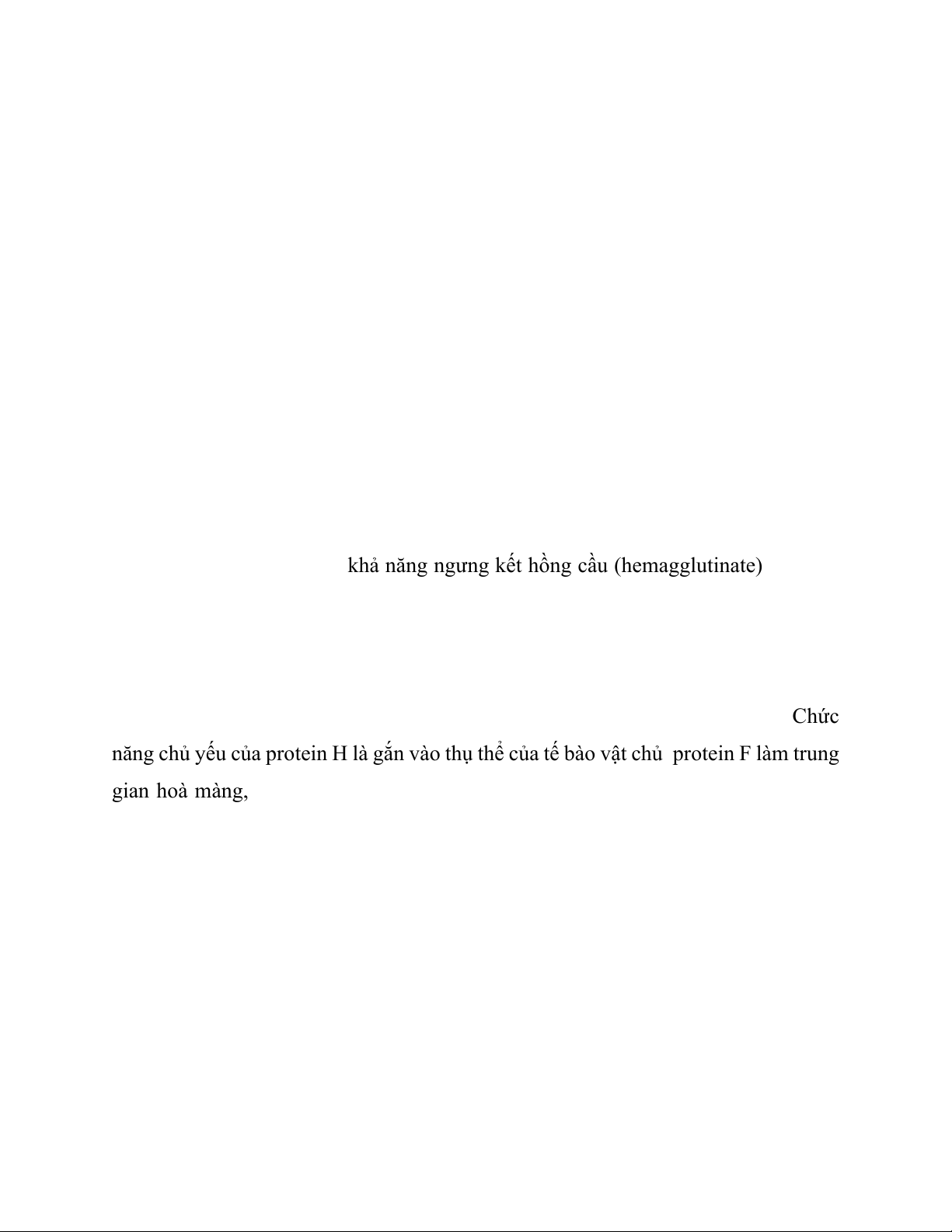 năng chủ yếu của protein H là gắn vào thụ thể của tế bào vật chủ, protein F làm trung