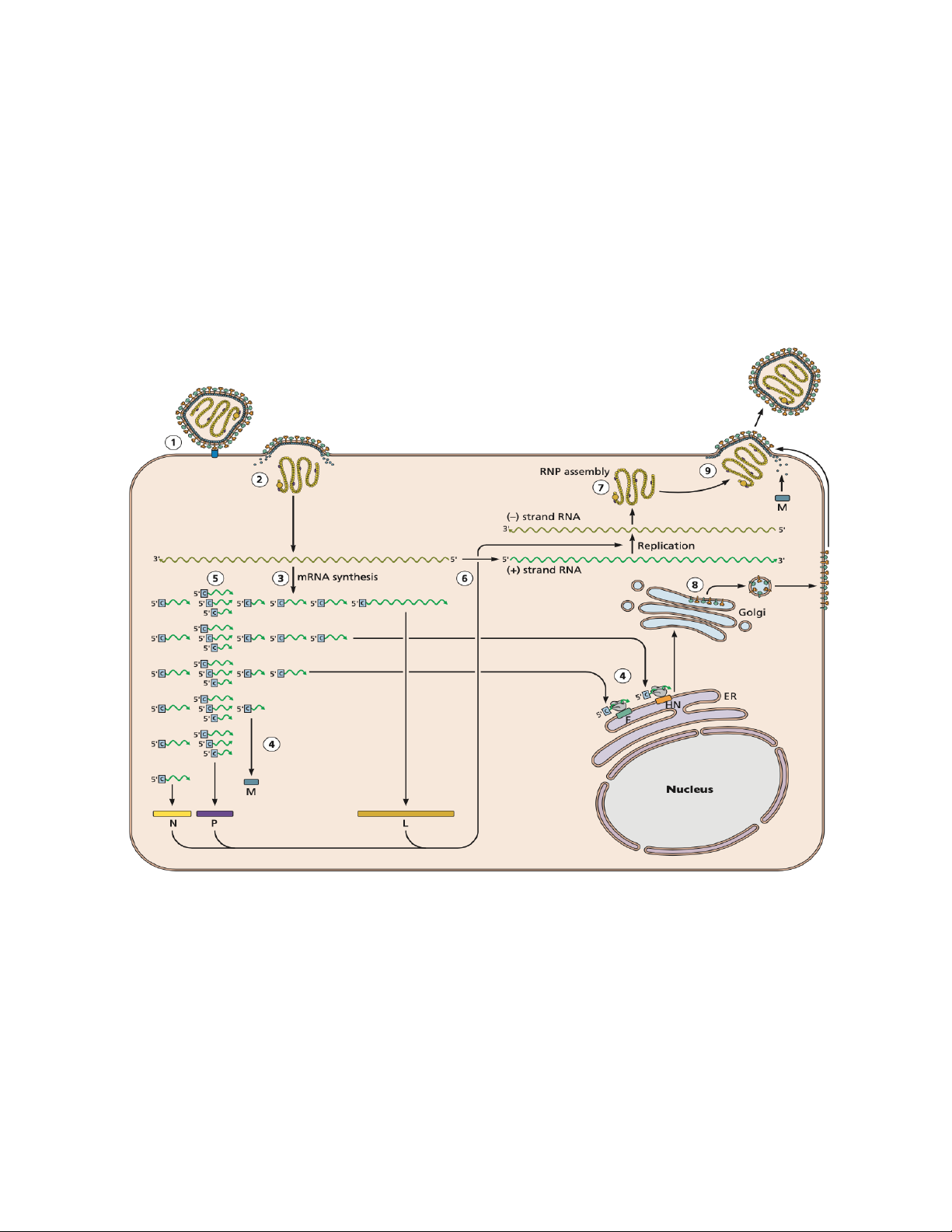 Các protein N,P và L kết hợp với RNA tạo thành phức hợp RNP hoạt hoá, khởi động