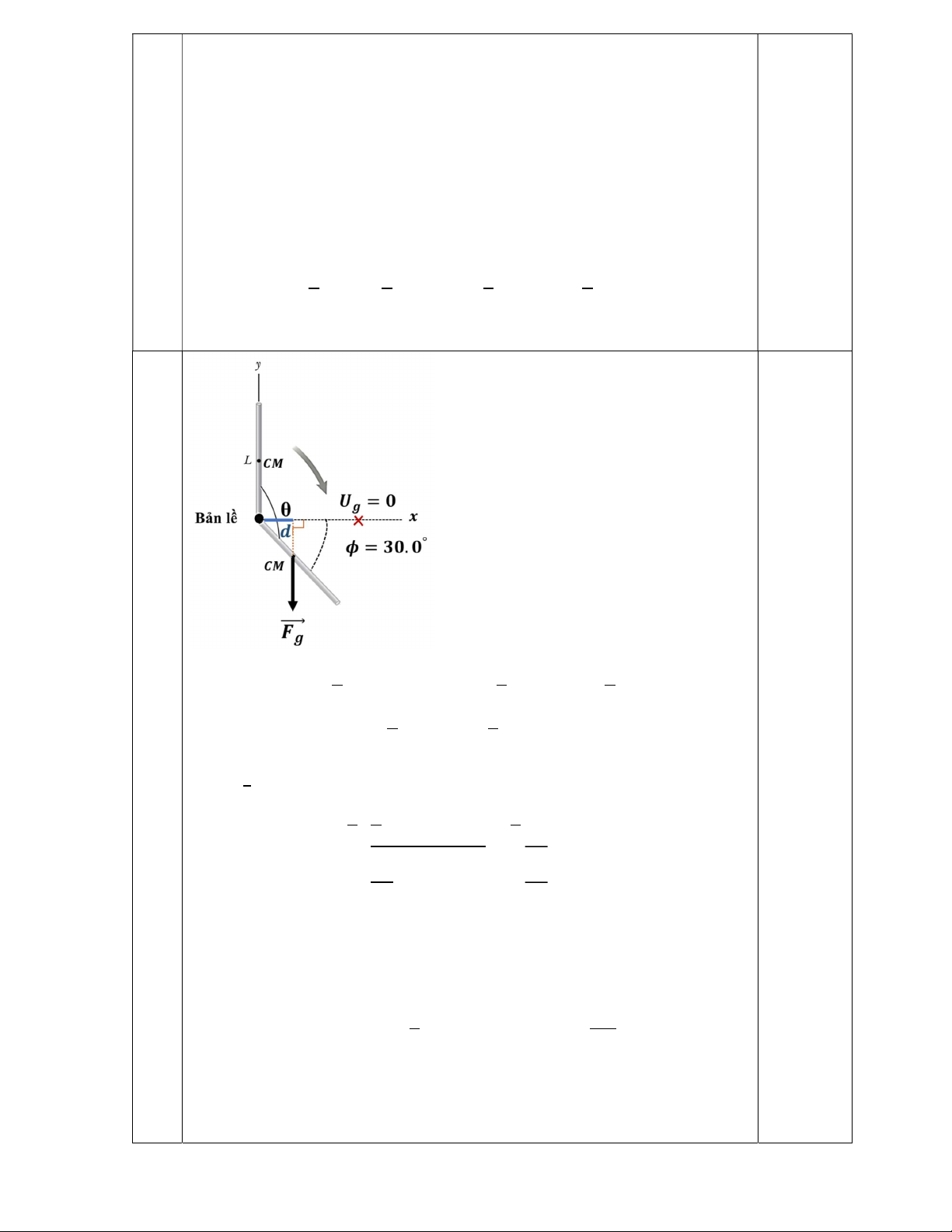 thanh, là moment của trọng lực, với cánh tay đòn bằng 𝑑 = cos 𝜙. Vậy: 0.50 𝐿 1 3𝑔 3√3𝑔 𝑀𝑔 ∙ cos 𝜙 = 𝑀𝐿 ∙ 𝛼 ⇒ 𝜶 = cos 𝜙 =