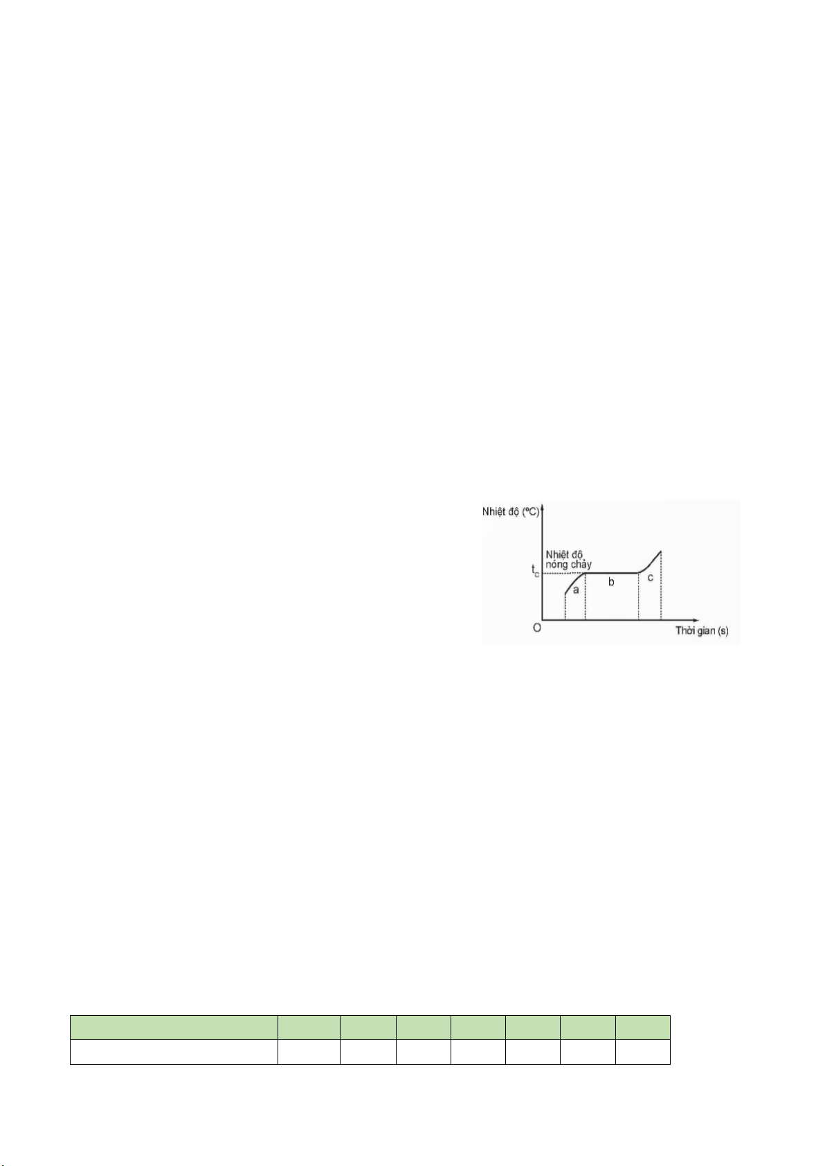 Câu 8. Một tinh thể bị nấu chảy thành chất lỏng nóng và sau đó nguội đi. Bảng bên dưới ghi lại