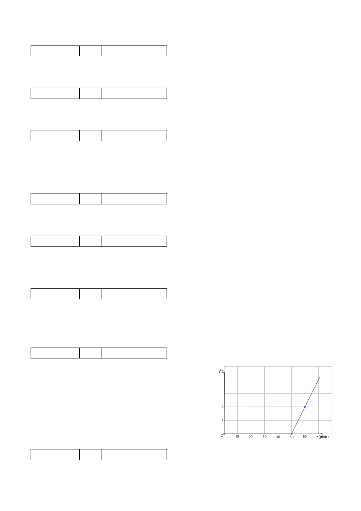 Câu 6. Trong suốt thời gian sôi, nhiệt độ của chất lỏng A. giảm dần. B. không thay đổi. C. tăng dần. D. khi tăng khi giảm.