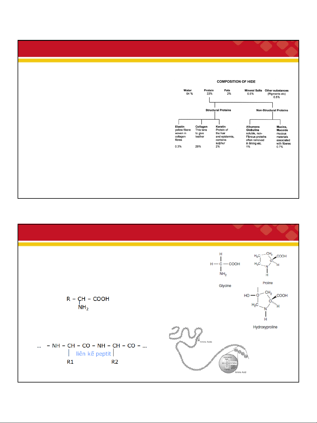 Protit cấu tạo Từ hơn 20 aminoaxit khác nhau, Ví dụ: glixin, alanin v.v. •