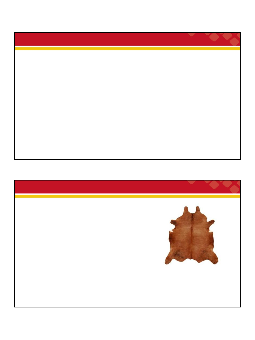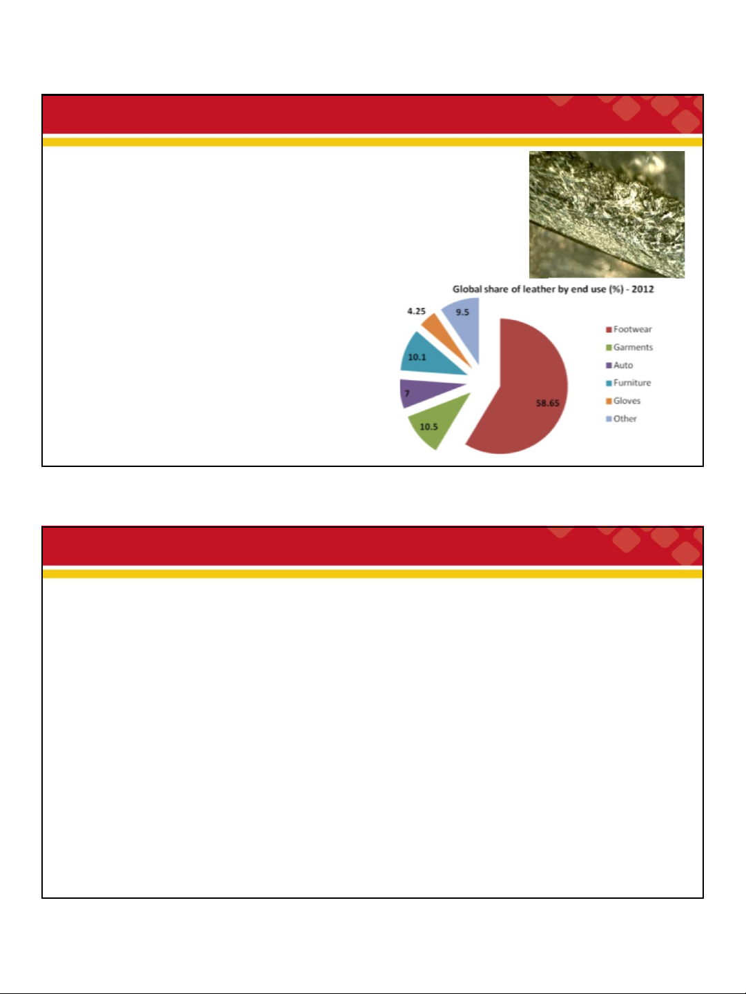 Là vật liệu phù hợp nhất để làm giầy và SP da Da nguyên liệu: ✓ Da trâu bò chiếm 68,8% ✓ Da cừu 12,9% ✓ Da dê 11,6% ✓ Da lợn 6,7%