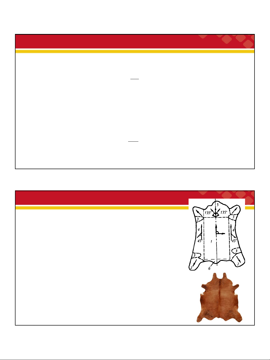 ✓ Hình dạng tối ưu của con da tạo thành ít phế liệu biên nhất đó là hình vuông, sau đó là hình dạng phần lưng, da nguyên con