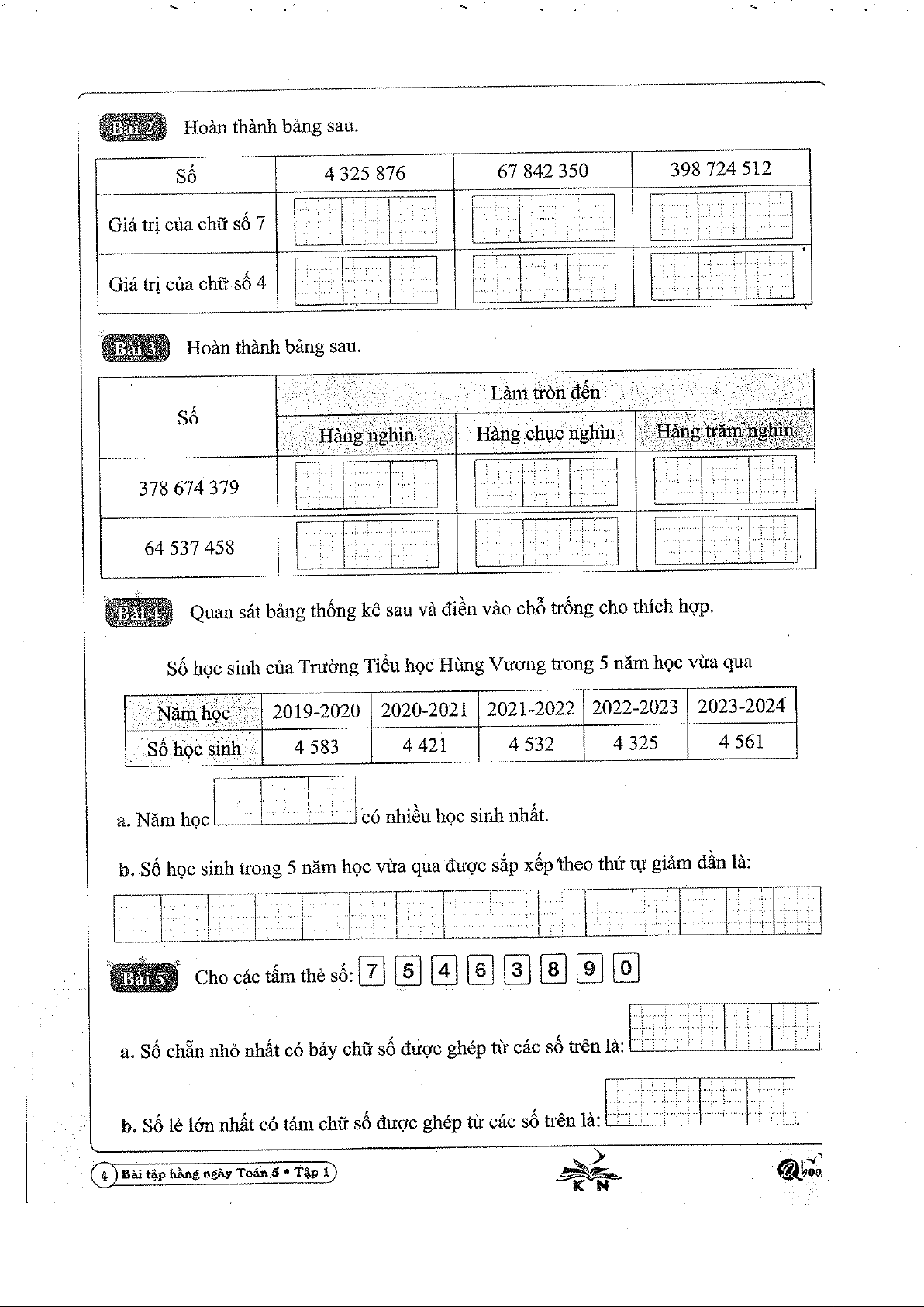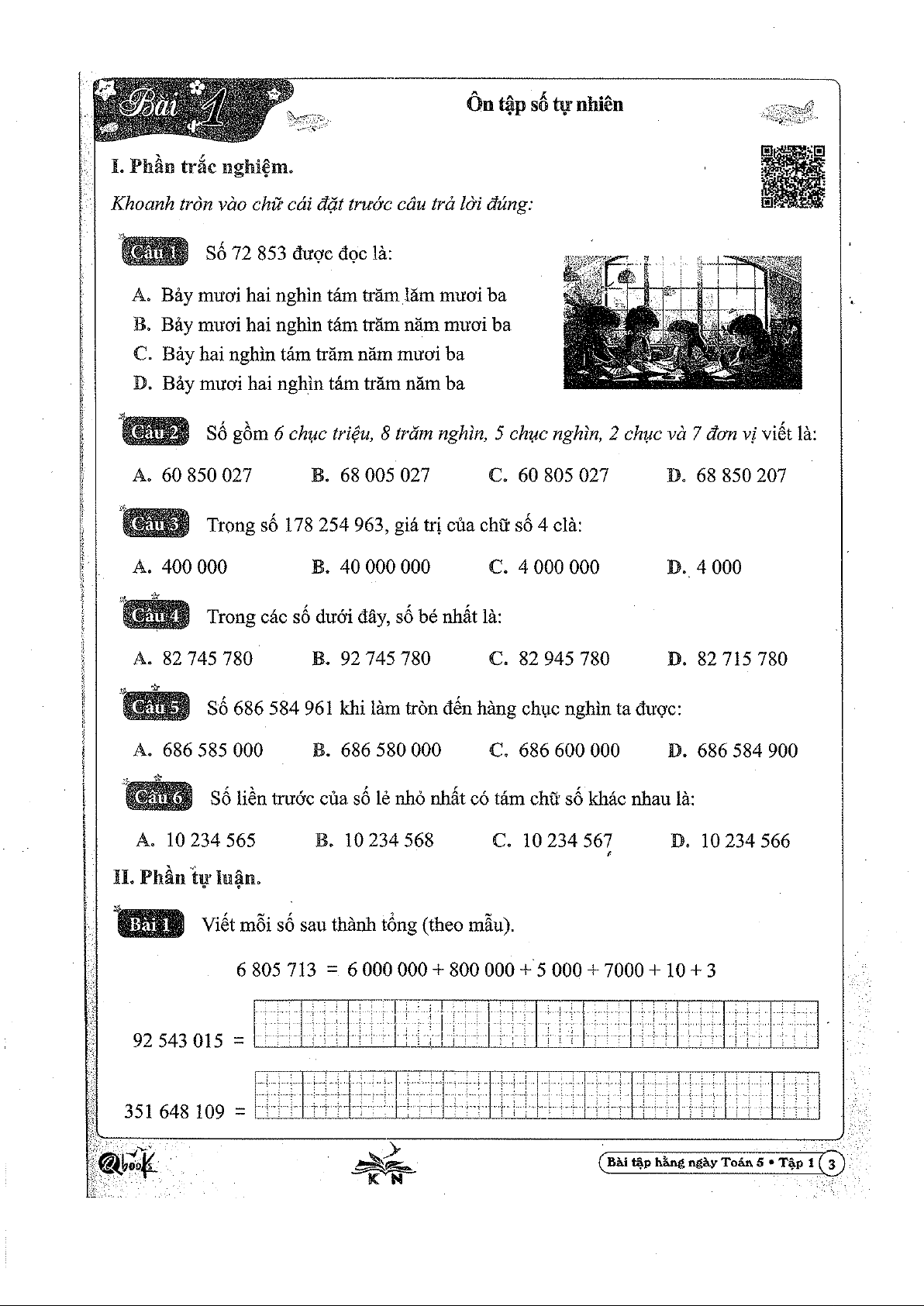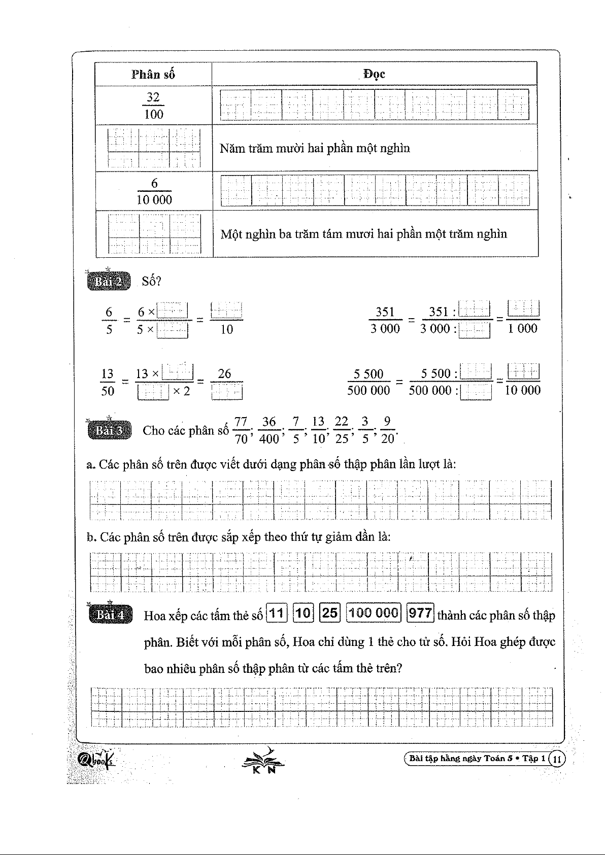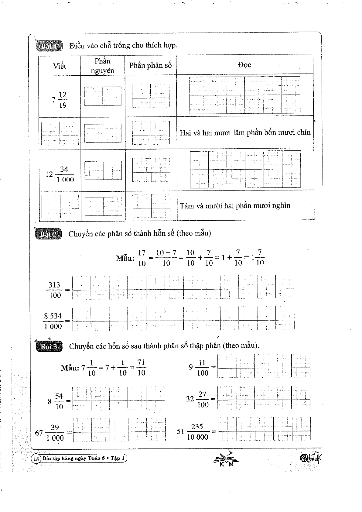 Vở bài tập hằng ngày môn Toán 5 tập 1