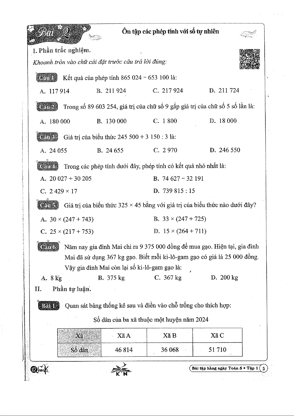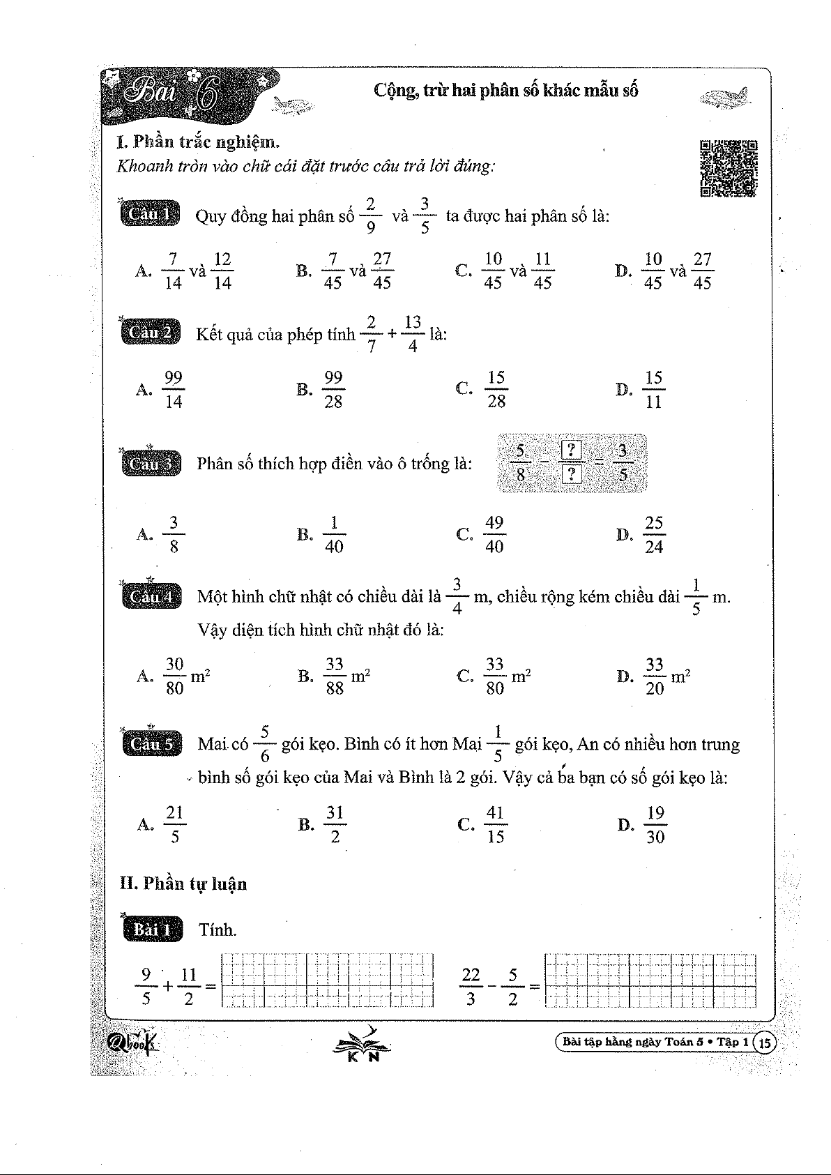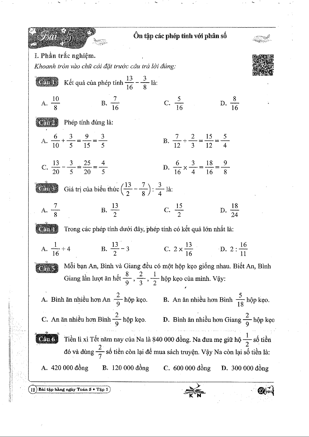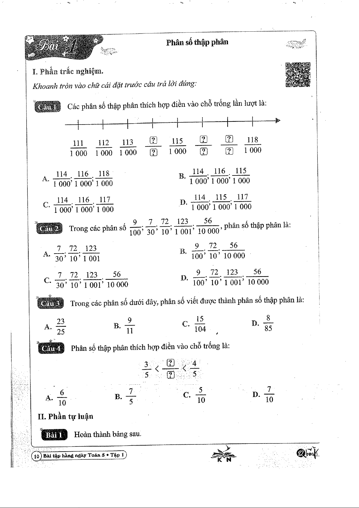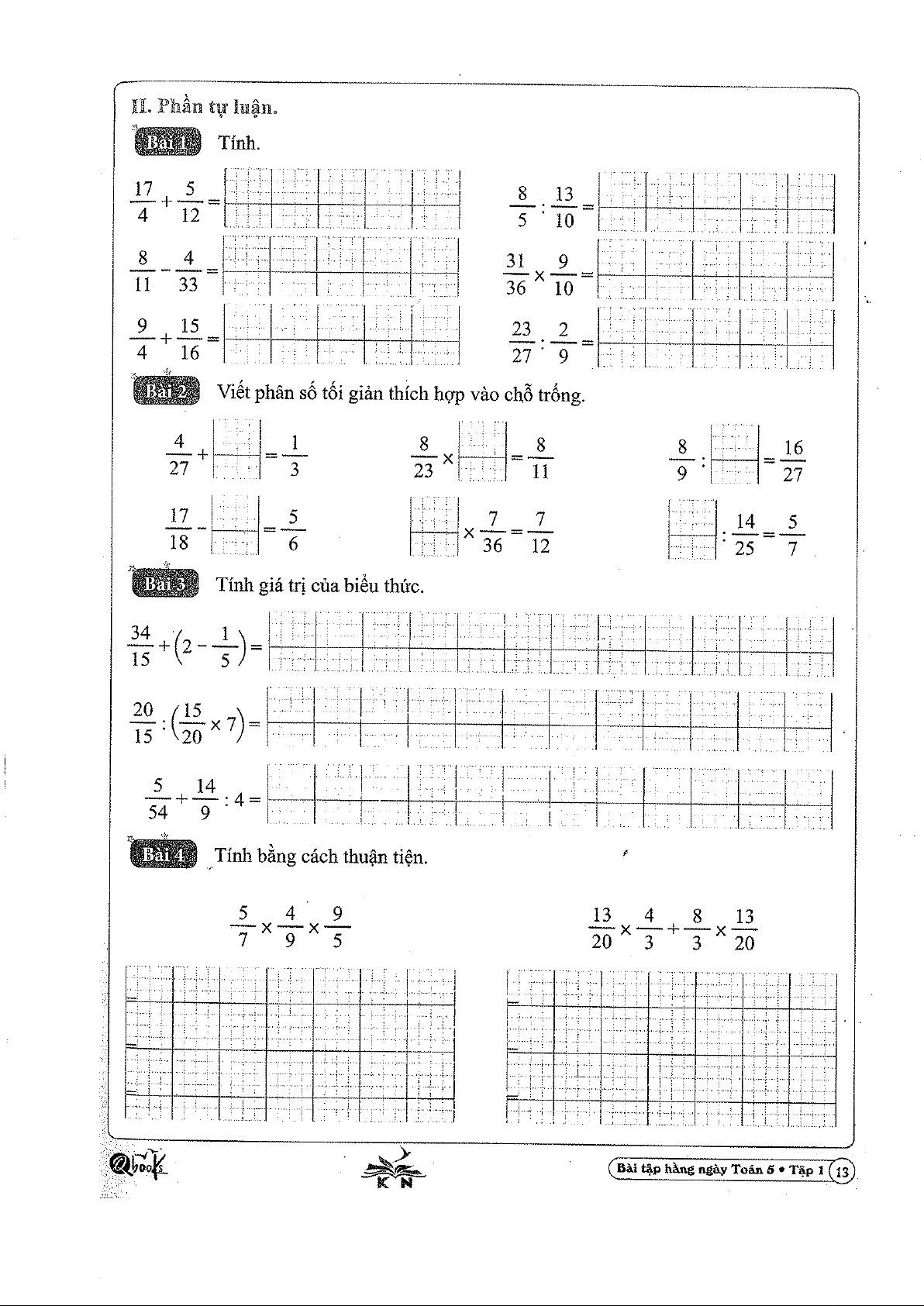 Vở bài tập hằng ngày môn Toán 5 tập 1