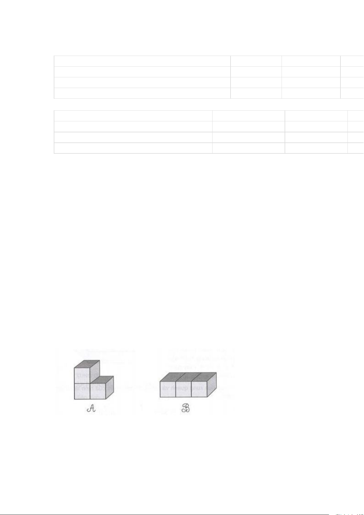 Câu 5: Cho hai hình dưới đây, được xếp bởi các hình lập phương cạnh 10 cm
