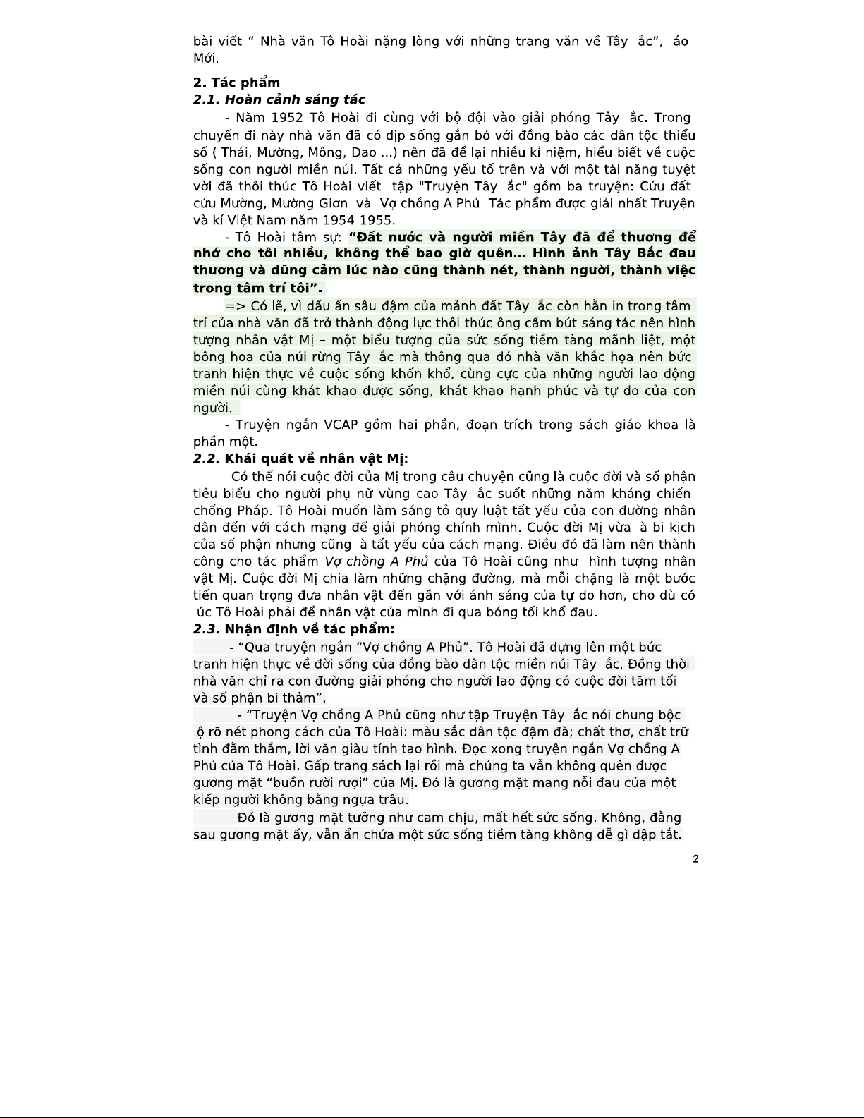 Vợ Chồng A Phủ - B1 - Tóm Tắt Tác Giả và Tác Phẩm Tô Hoài