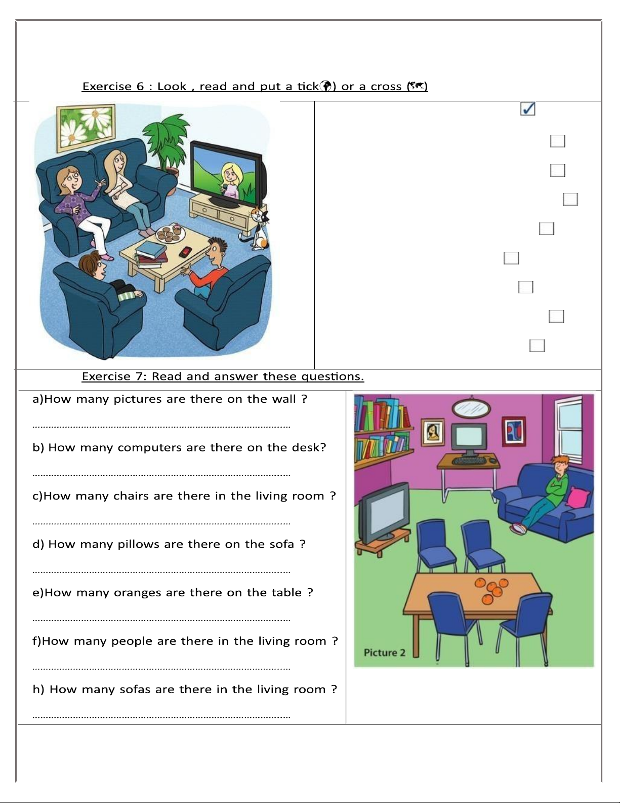 f)How many – pictures – on the wall - are – there ?