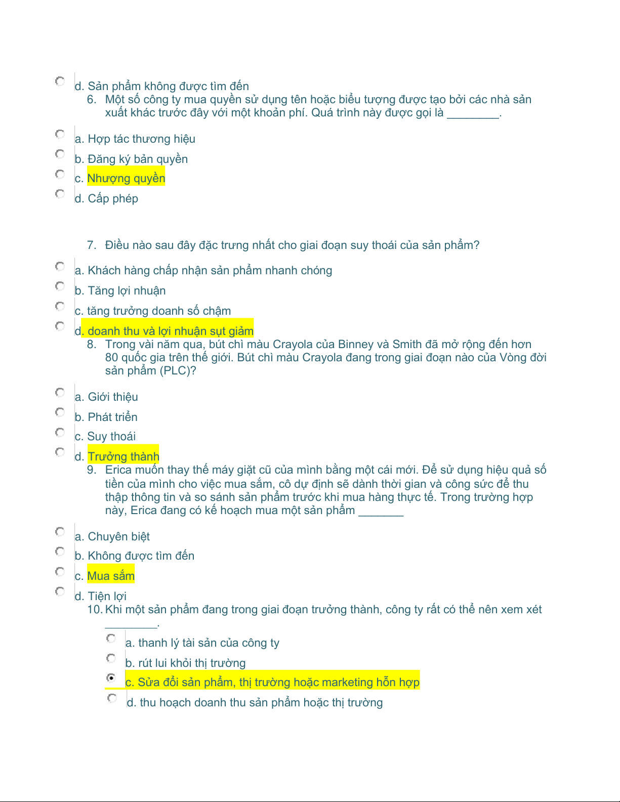 80 quốc gia trên thế giới. Bút chì màu Crayola đang trong giai đoạn nào của Vòng đời sản phẩm (PLC)? a. Giới thiệu b. Phát triển c. Suy thoái d. Trưởng thành