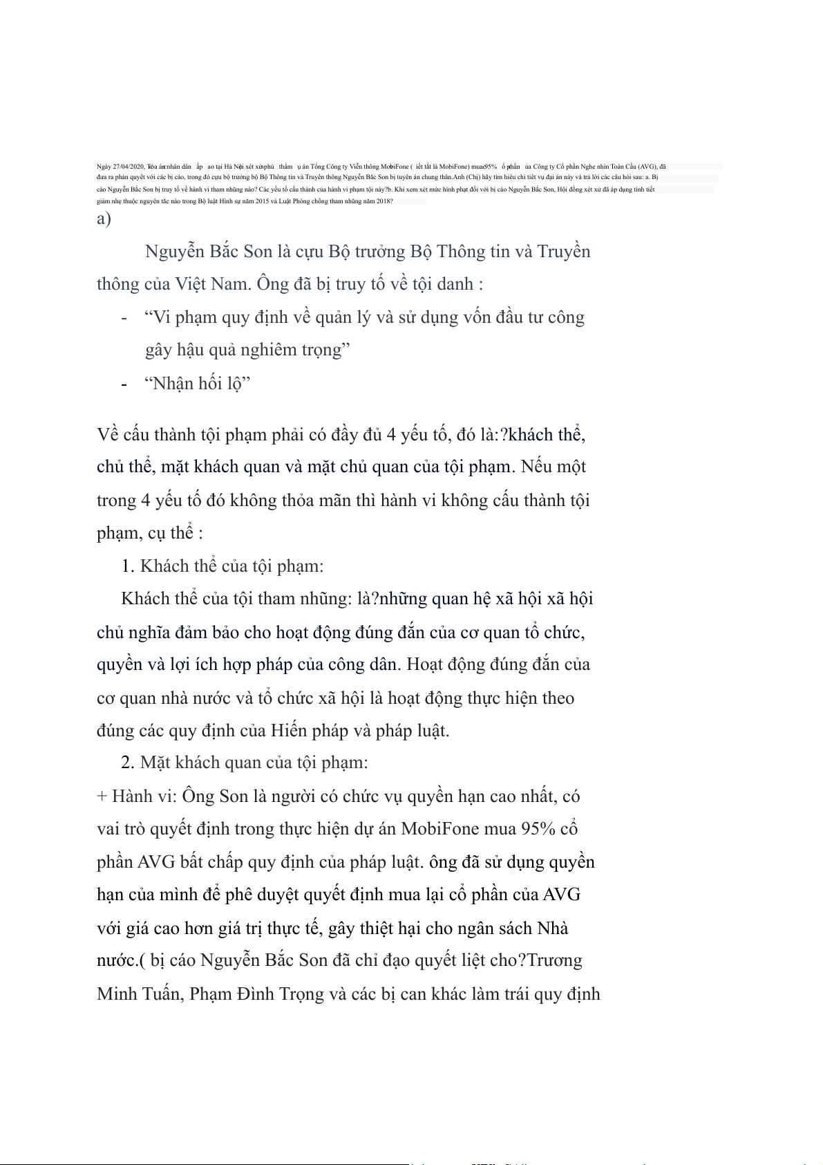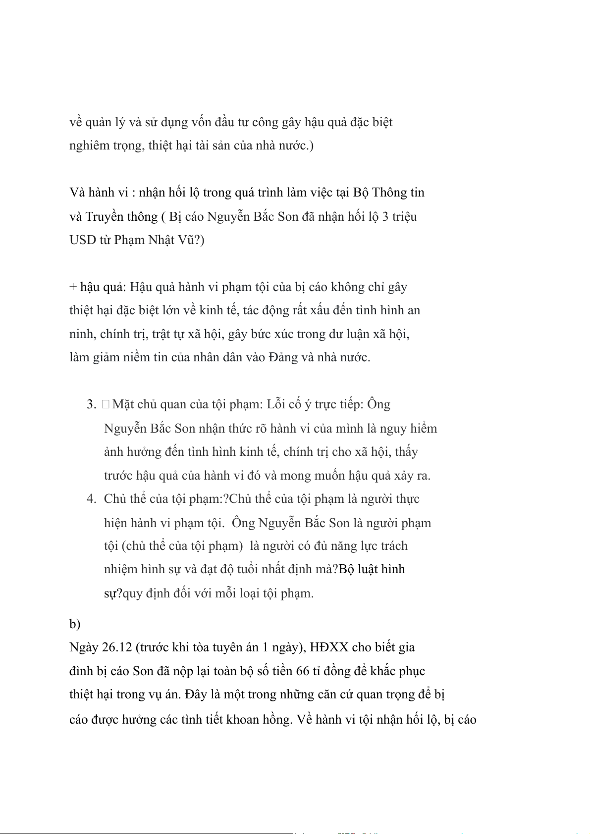 đưa ra phán quyết với các bị cáo, trong đó cựu bộ trưởng bộ Bộ Thông tin và Truyền thông Nguyễn Bắc Son bị tuyên án chung thân.Anh (Chị) hãy tìm hiểu chi tiết vụ đại án này và trả lời các câu hỏi sau: a. Bị