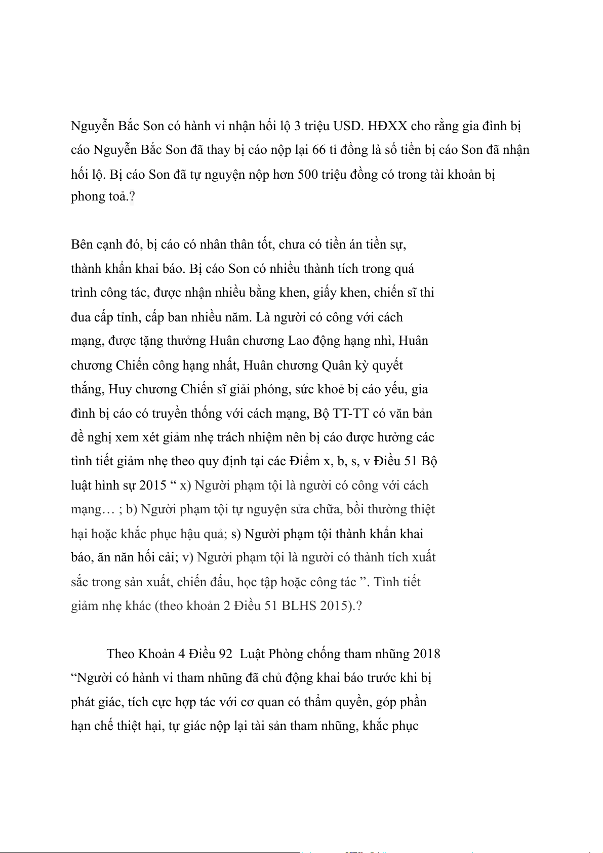 Nguyễn Bắc Son có hành vi nhận hối lộ 3 triệu USD. HĐXX cho rằng gia đình bị
