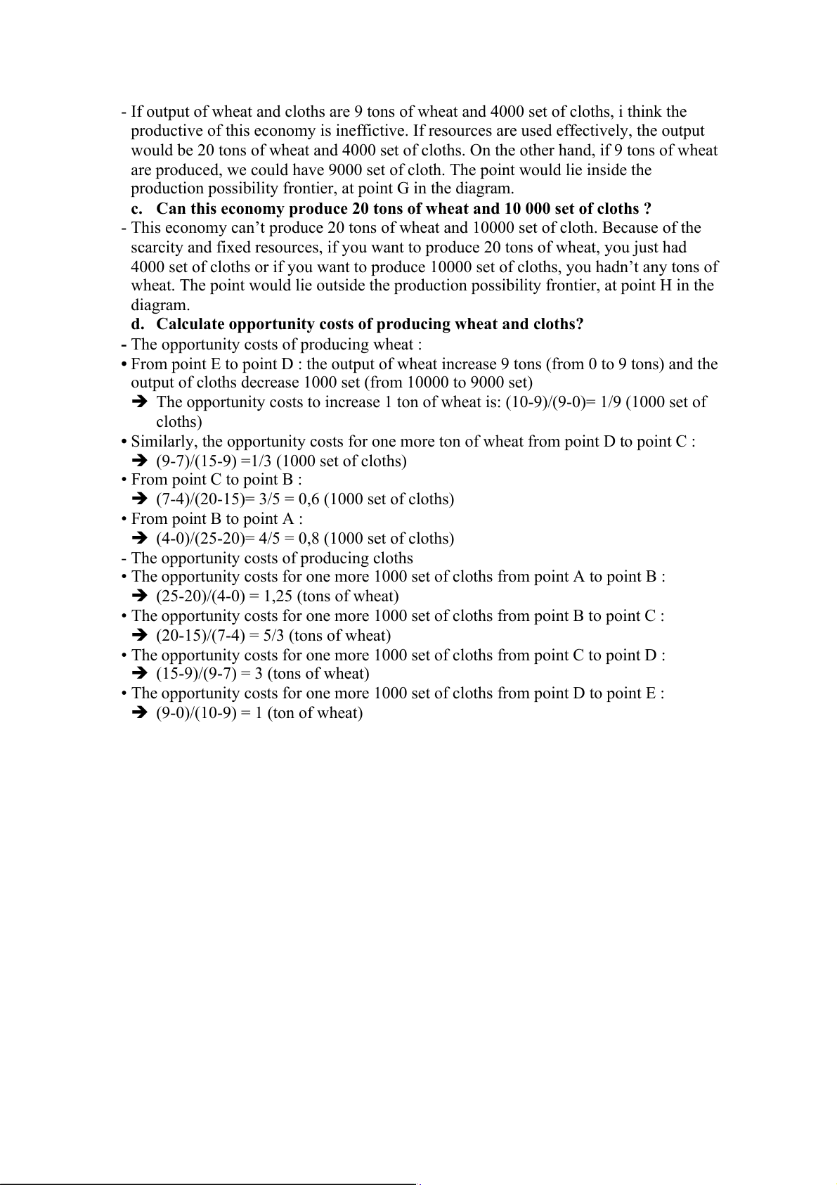 • From point E to point D : the output of wheat increase 9 tons (from 0 to 9 tons) and the