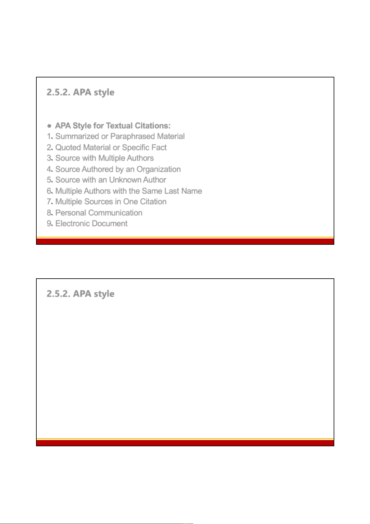 7. Multiple Sources in One Citation 8. Personal Communication 9. Electronic Document 9 9 2.5.2. APA style