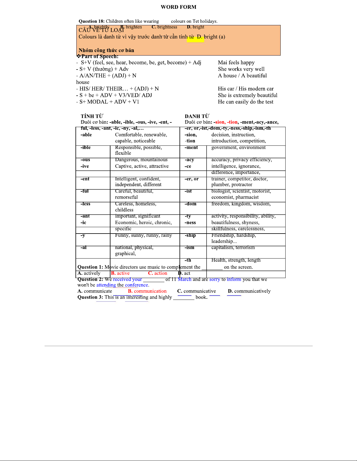 WORD FORM EXERCISES - ENGLISH LANGUAGE LEARNING