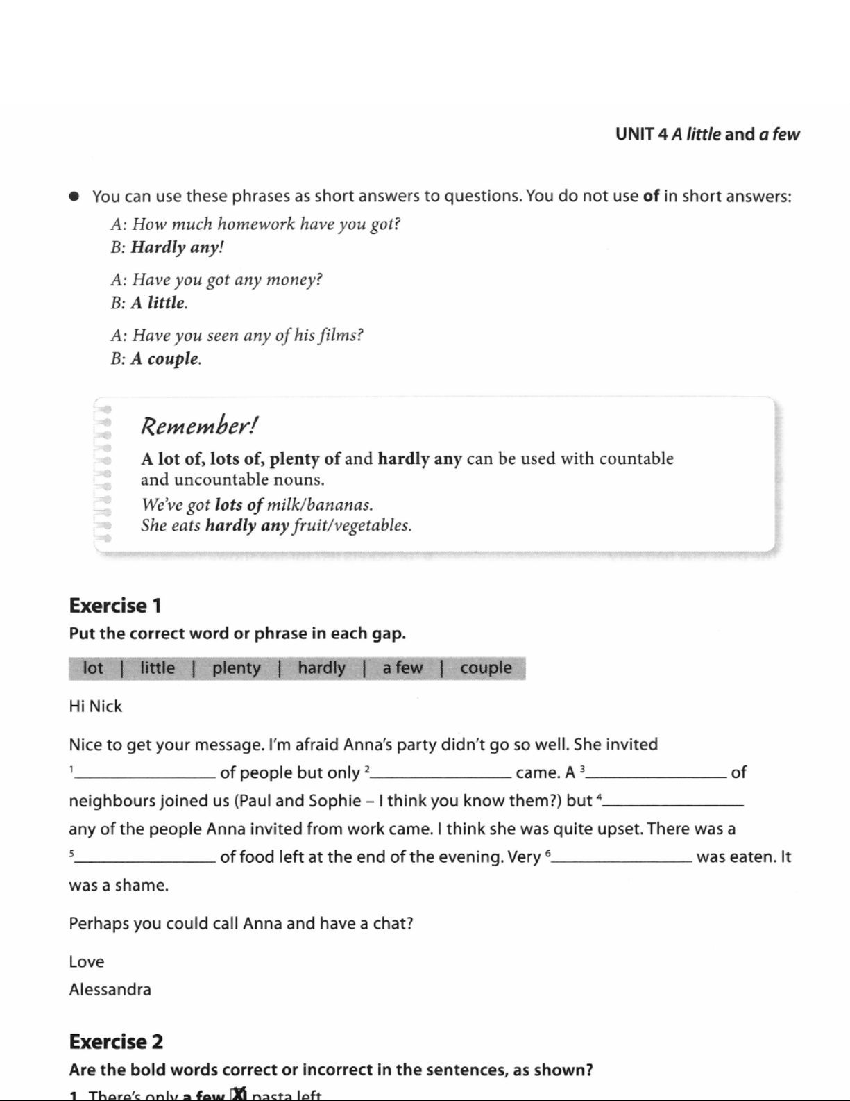 Work on Your Grammar (A2) - Unit 4: A Little and A Few Exercises - Studocu