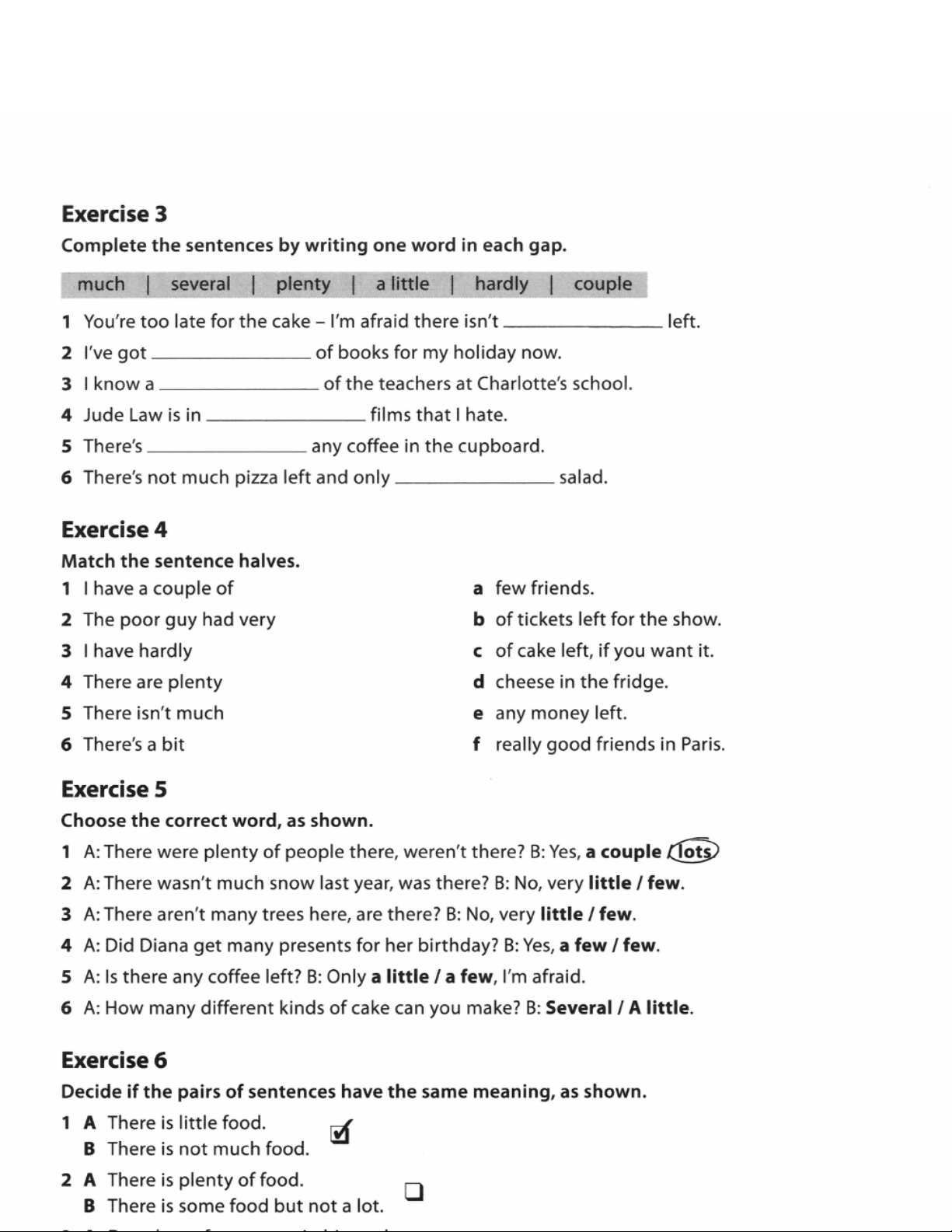 Work on Your Grammar (A2) - Unit 4: A Little and A Few Exercises - Studocu 13:47, 09/01/2026