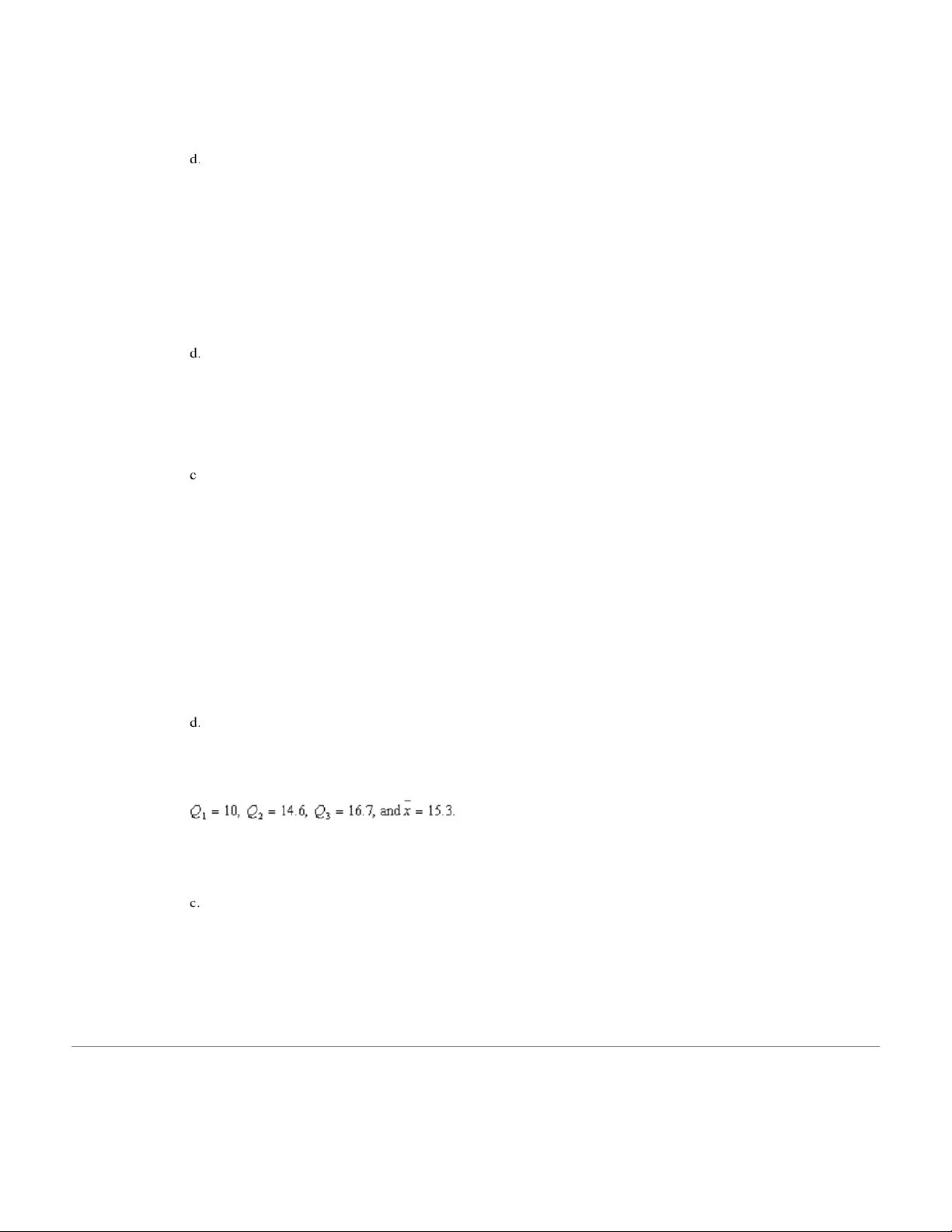 ____ 11. Which one of the values below represents a lower quartile for the data set 23, 24, 21, and 20? a. 22.0 b. 22.5 . 20.25 d. 23.5 e. none of these
