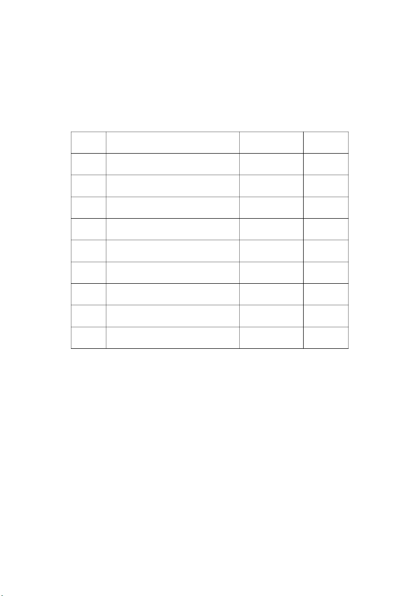 ĐÁNH GIÁ MỨC ĐỘ THAM GIA CỦA CÁC THÀNH VIÊN TRONG NHÓM STT Họ và tên MSV ĐIỂM 1 Hoàng Hải Yến* 11208549 10 2 Thân Thị Lan Hương 11205451 10 3 Lưu Thanh Tú 11208272 10 4 Trần Thị Tươi 11208348 9.5 5 Trần Thị Như 11206468 10 6 Bùi Lương Duy Khánh 11201927 9.5 7 Lê Phương Anh 11200142 10 8 Nguyễn Thu Phương 11203204 10 Trần Thị Minh Trang 11207274 9 10 2