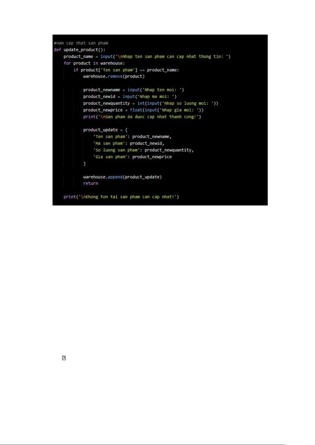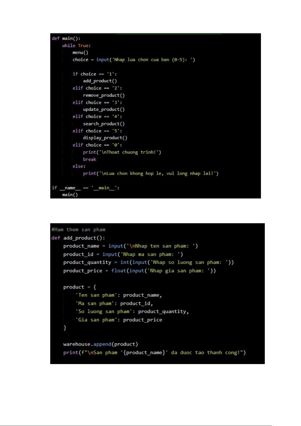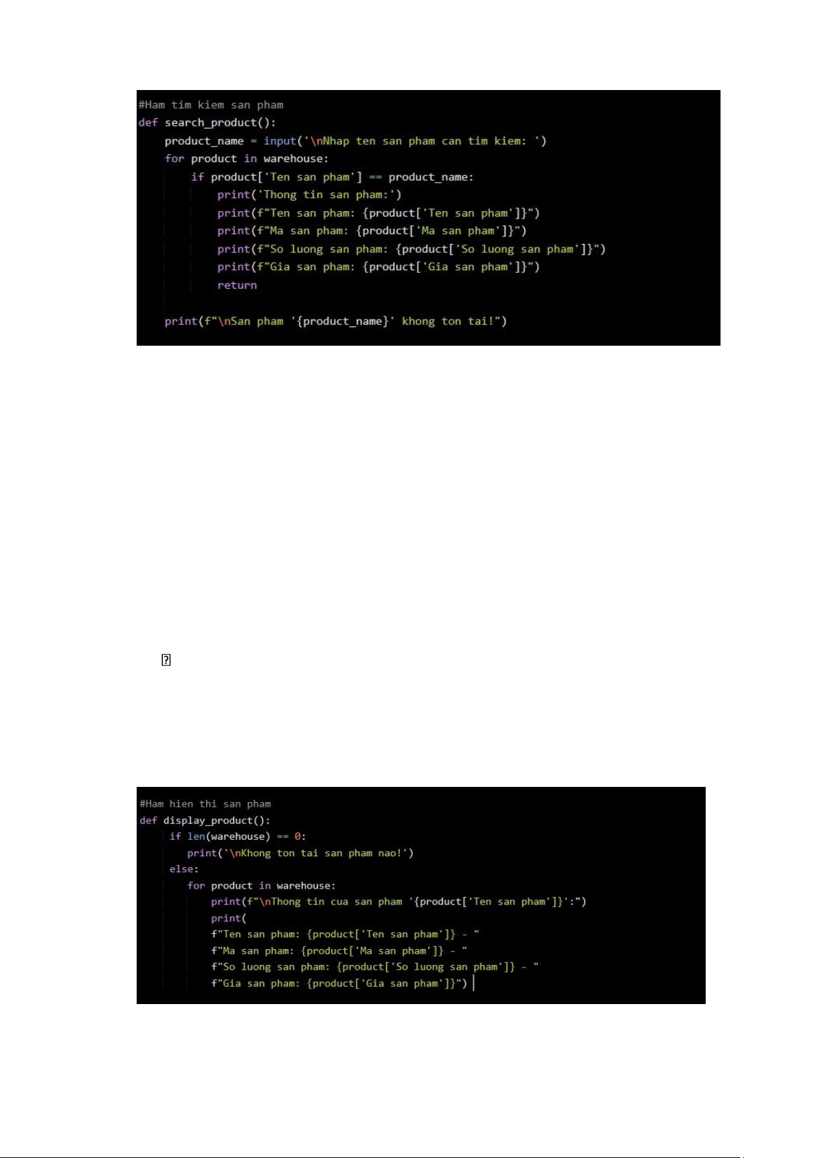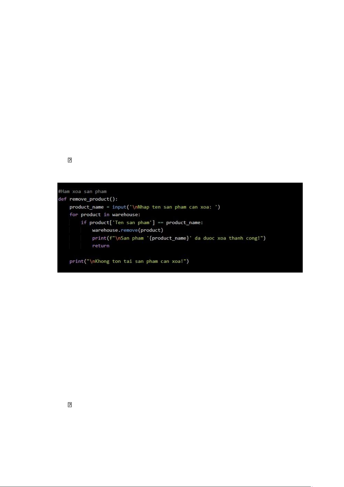 - Hàm add_product() có chức năng nhập thông tin sản phẩm và thêm vào danh sách. [9] lOMoAR cPSD| 46342985