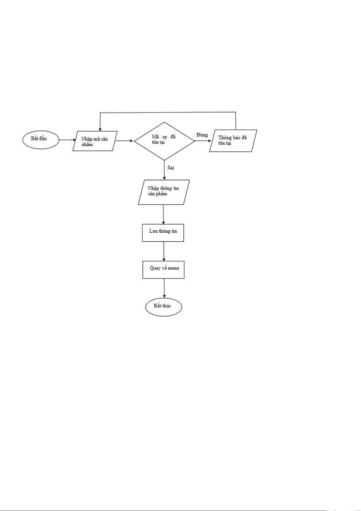 Bước 5: Lưu thông tin sản phẩm Bước 6: Quay về menu Bước 7: Kết thúc