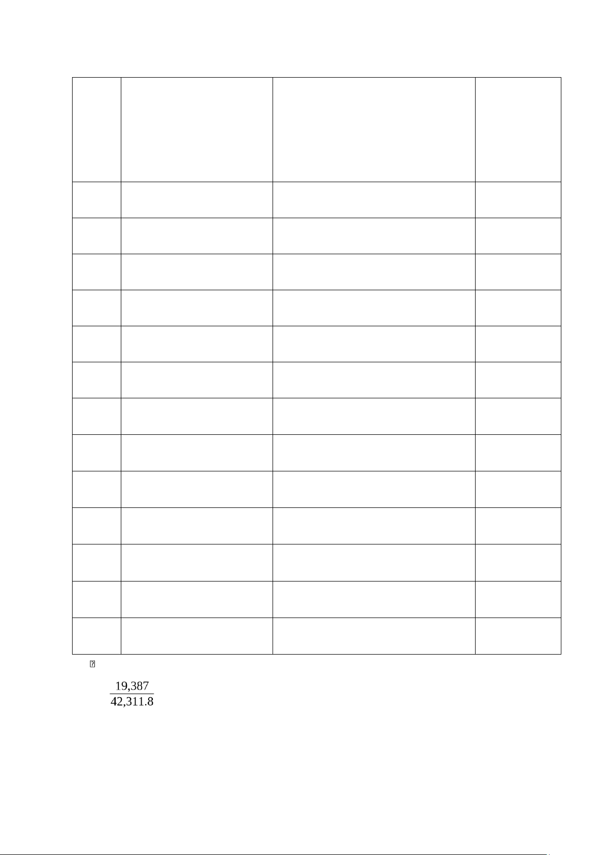 Dòng tiền chiết khấu (nghìn Dòng tiền sinh (nghìn VNĐ) VNĐ) cần phải thu hồi (nghìn VNĐ) 0 Vốn đầu tư: 140,000 140,000 140,000 1 29,614 29,614(1+1%)-1 =29,320.8 110,679.2 2 18,364 18,364 (1+1%)-2=18,002.2 92,677 3 18,364 18,364 (1+1%)-3= 17,823.9 74,853.1 4 29,614 29,614(1+1%)-4= 28,458.5 46,394.6 5 19,114 19,114(1+1%)-5= 18,186.3 28,208.3 6 9,364 9,364(1+1%)-6= 8,821.3 19,387 7 45,364 45,364(1+1%)-7= 42,311.8 8 49,864 49,864(1+1%)-8= 46,048.6 9 10,114 10,114(1+1%)-9= 9,247.6 10 9,364 9,364(1+1%)-10= 8,477.1 11 19,864 19,864(1+1%)-11= 17,804.6 12 31,864 31,864(1+1%)-12=28,277.7