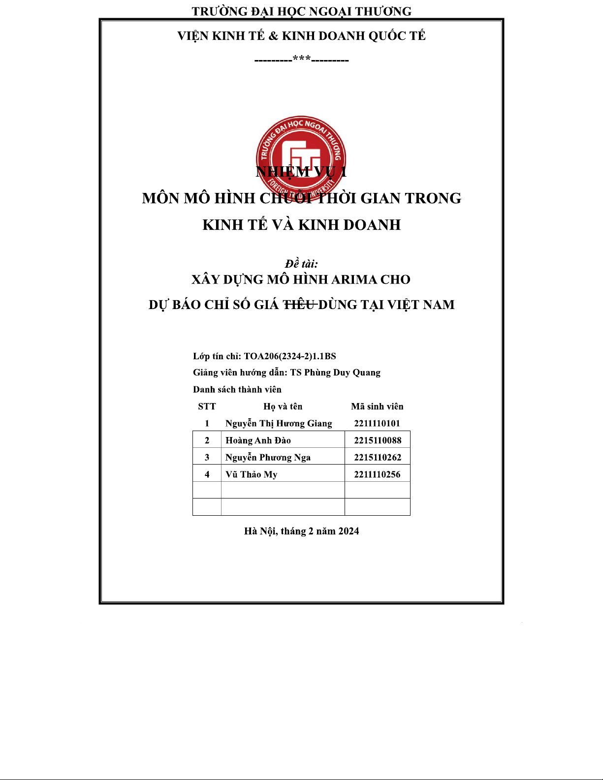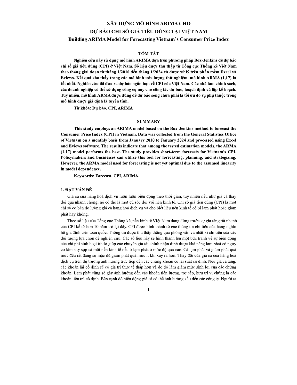 XÂY DỰNG MÔ HÌNH ARIMA DỰ BÁO CPI VIỆT NAM TOA 206 (2324 - 2)