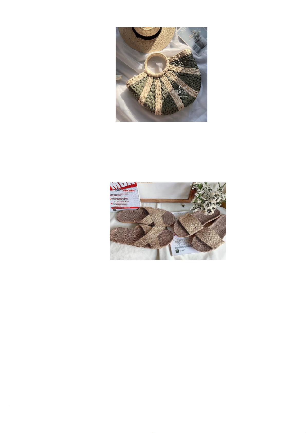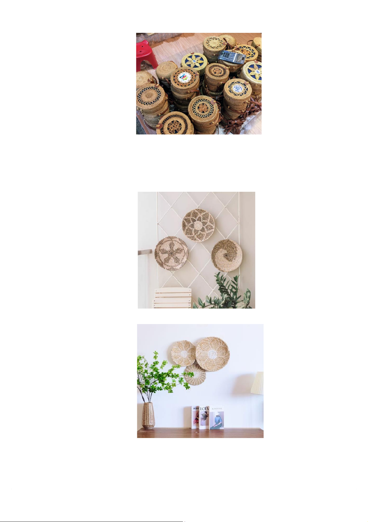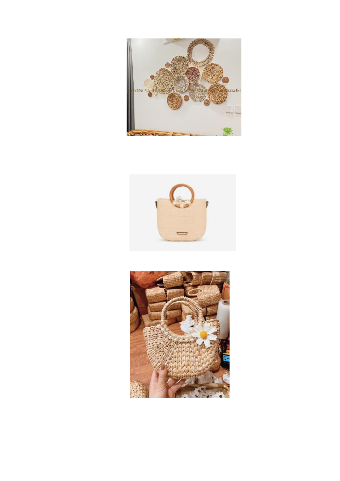 sản phẩm thủ công mỹ nghệ được làm từ cây cói với các mẫu mã đa dạng, sử dụng một