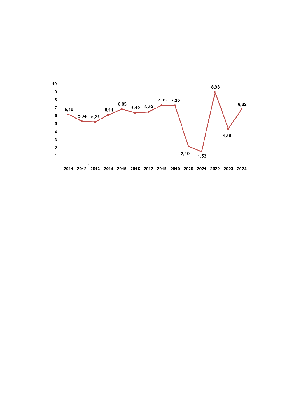 Hình 1: Tốc độ tăng GDP 9 tháng so với cùng kỳ năm trước các năm 2011-2024