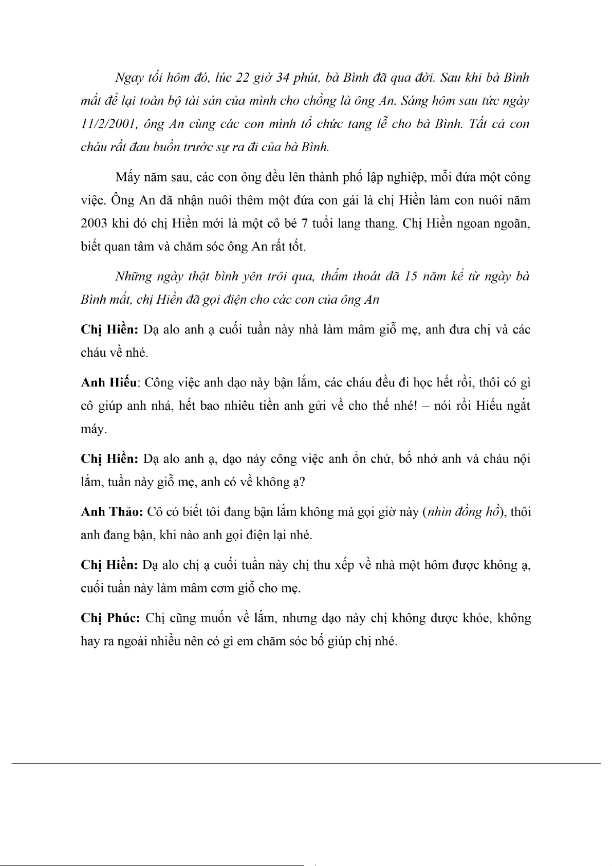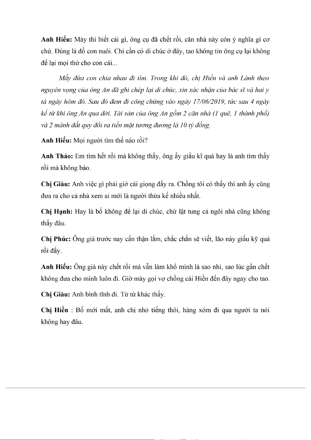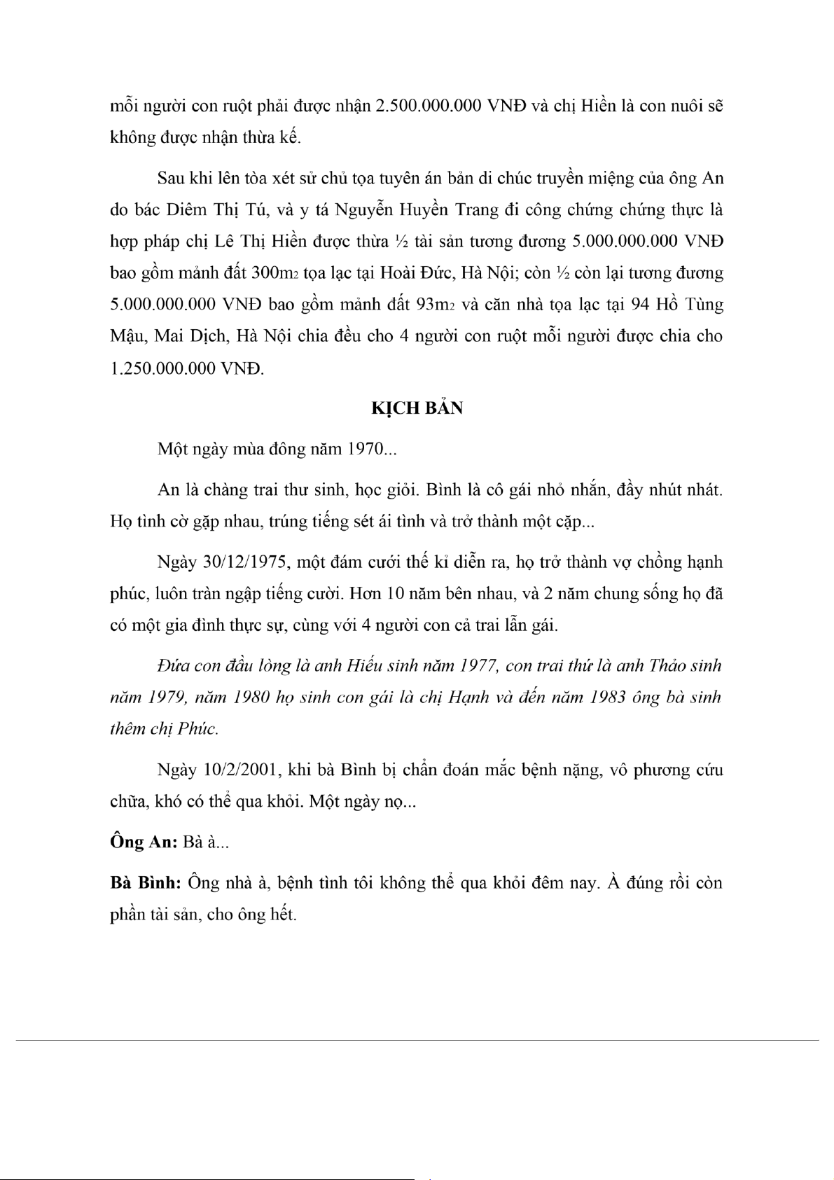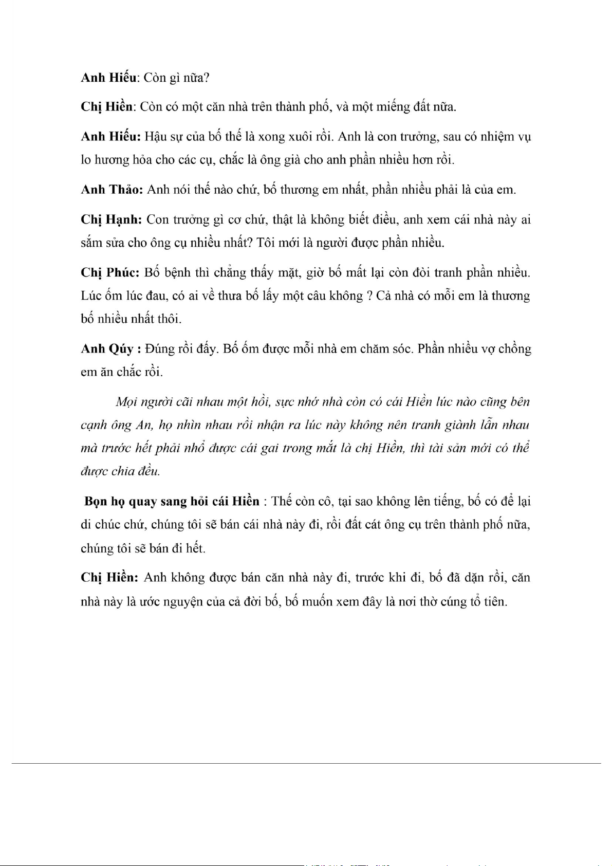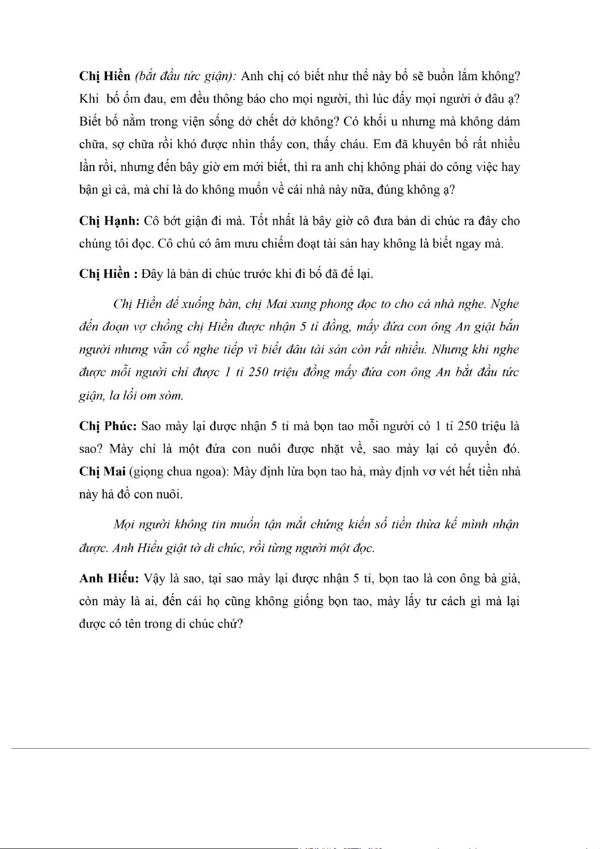 Chị Hạnh ( quay sang anh Thảo thì thầm): Có khi nào là chuyện di chúc không anh?
