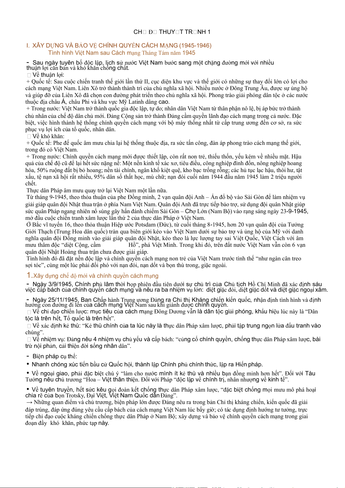 I. XÂY DỰNG VÀ BẢO VỆ CHÍNH QUYỀN CÁCH MẠNG (1945-1946)