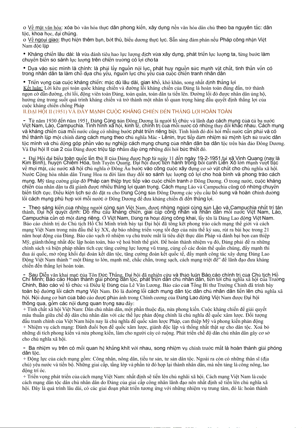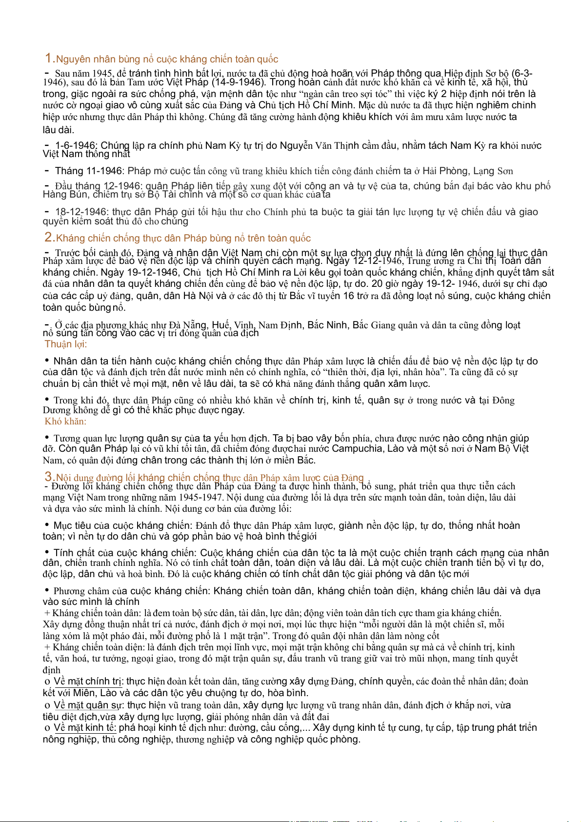 → Những quan điểm và chủ trương, biện pháp lớn được Đảng nêu ra trong bản Chỉ thị kháng chiến, kiến quốc đã giải